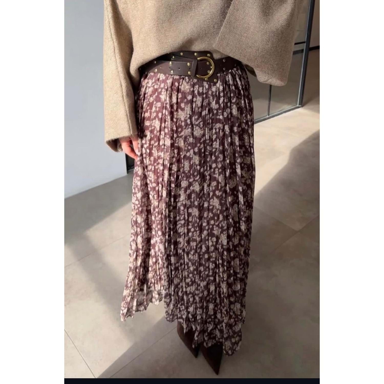 Çiçekli Şifon Etek 250651 - Acı Kahve - L
