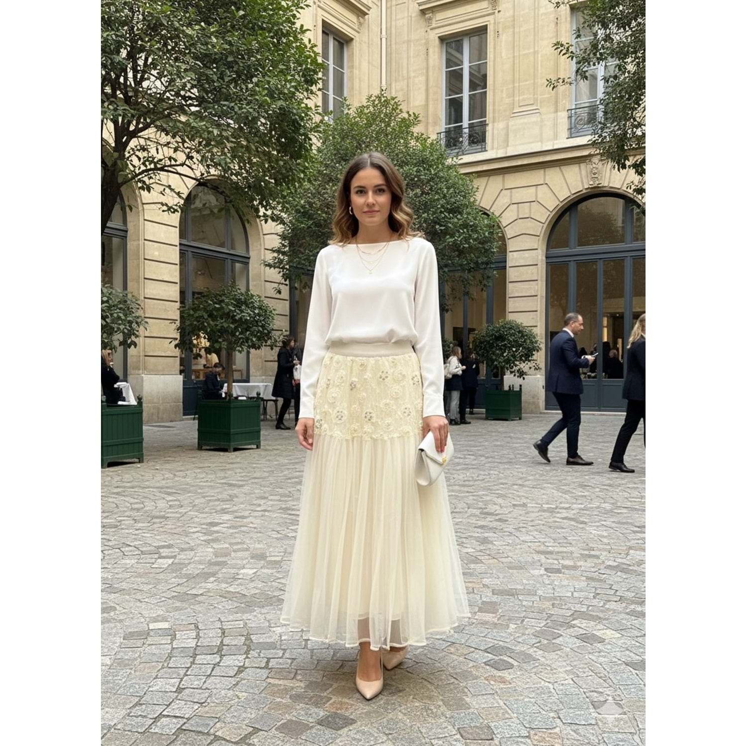 İthal İşlemeli Etek 38997 - Bej - TEK BEDEN