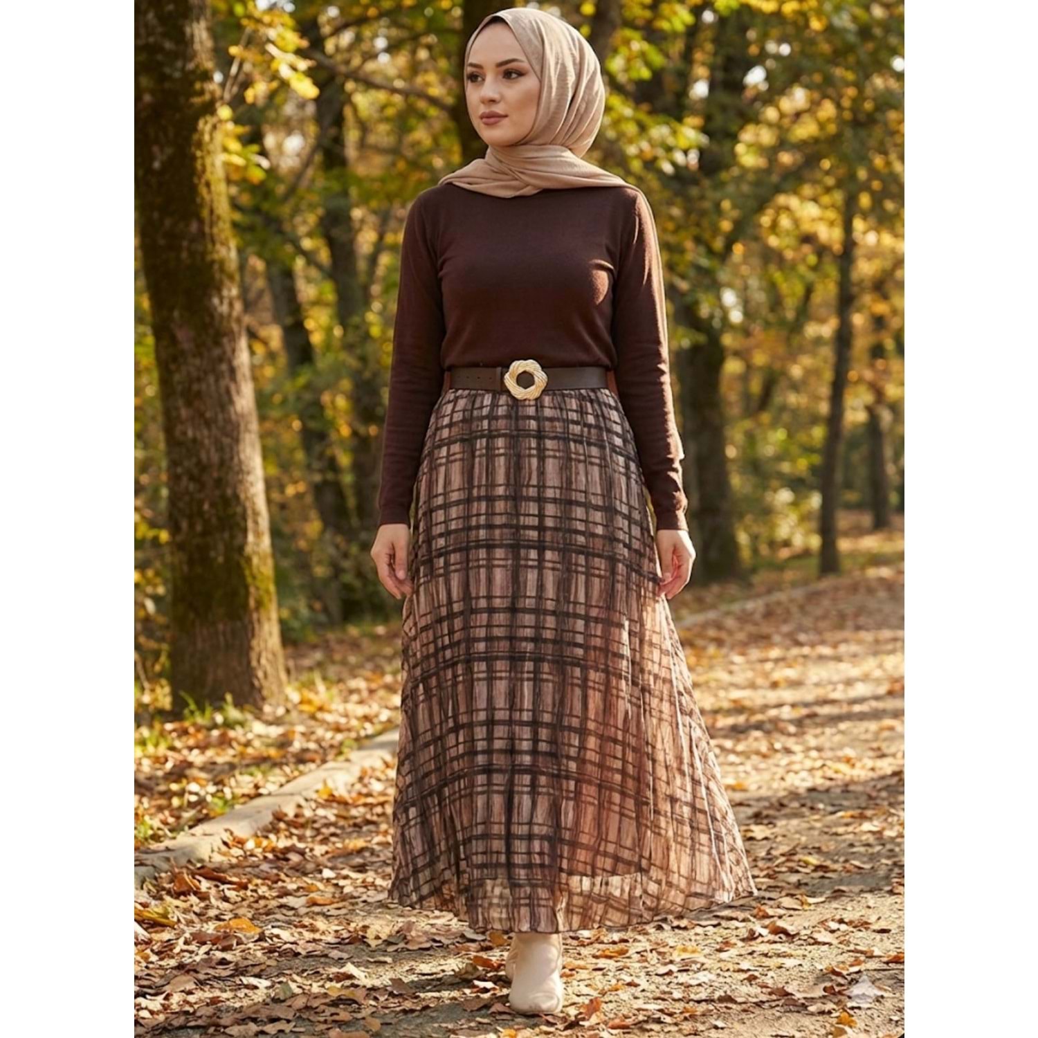 Şifon Etek 180024 - Kahve Rengi - 38