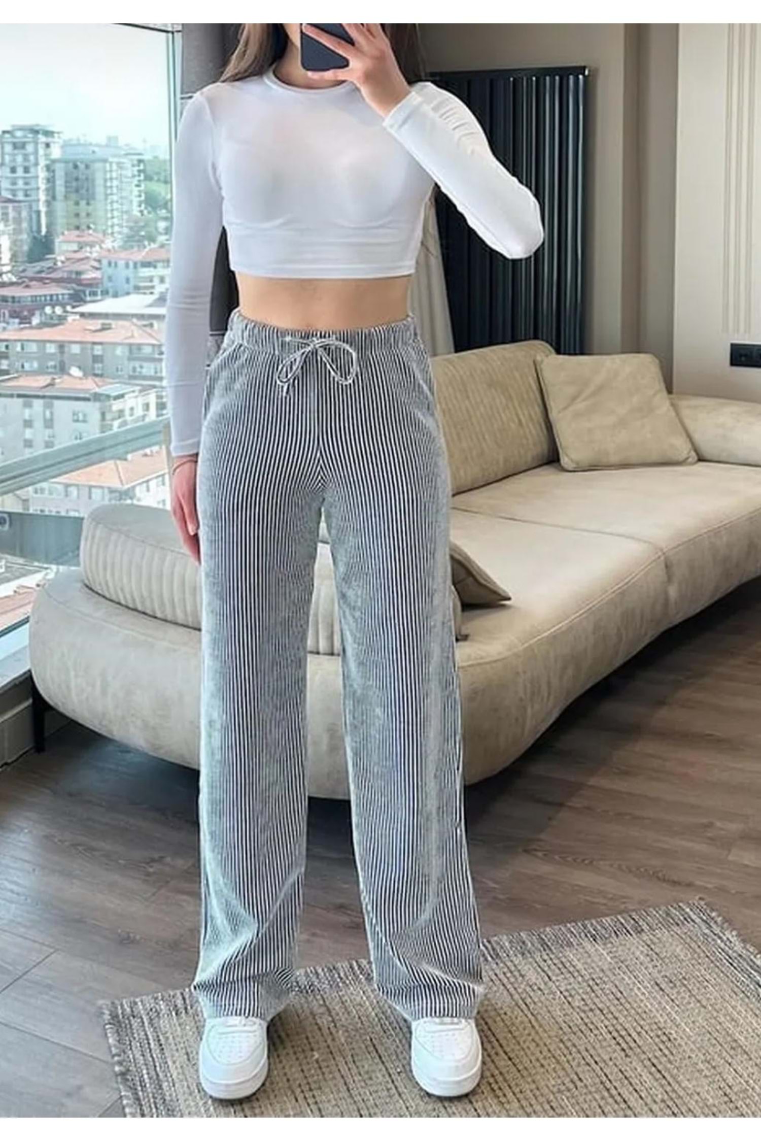 Çizgili Gofre Pantolon 820150 - Siyah - L