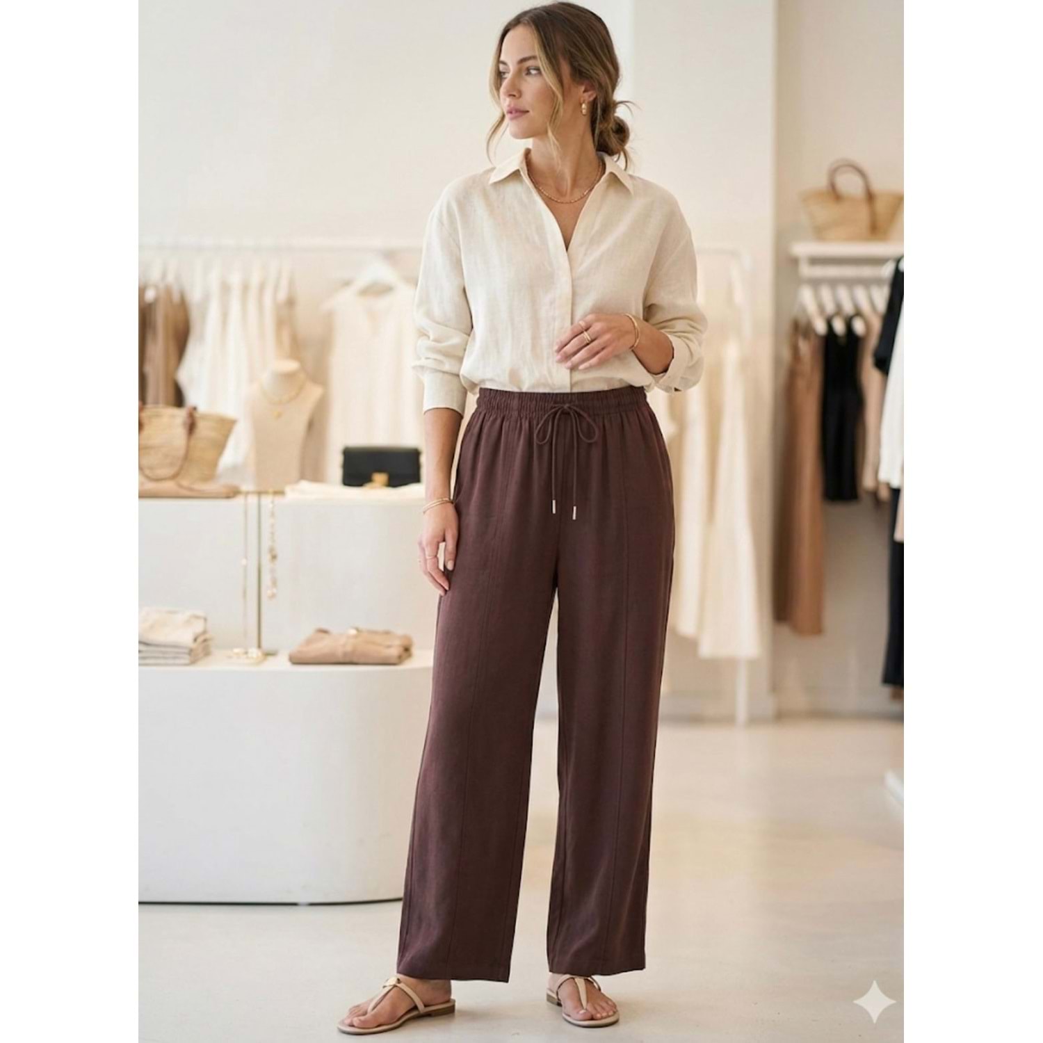 Konik Form Pantolon 36207 - Kahve Rengi - L - AZRA07396-58650