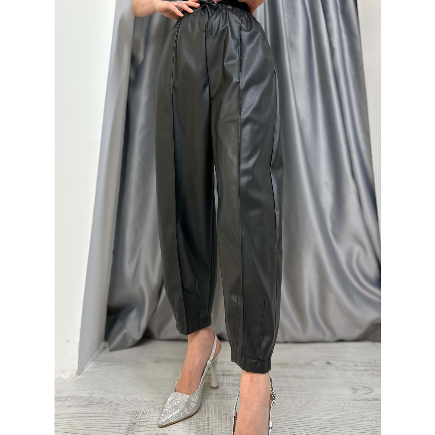 Nervürlü Deri Pantolon 33313 - Siyah - S - AZRA04996-Siyah-S