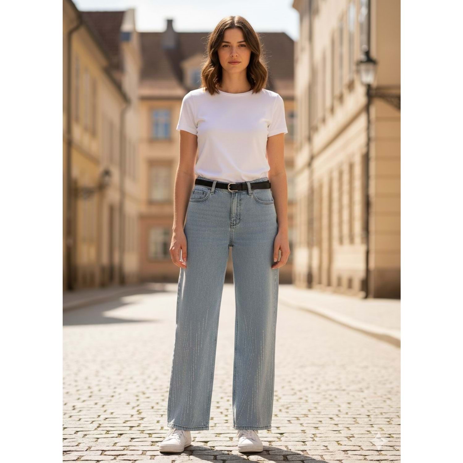 Paçası Taşlı Kot Pantolon 190050 - Mavi - 36