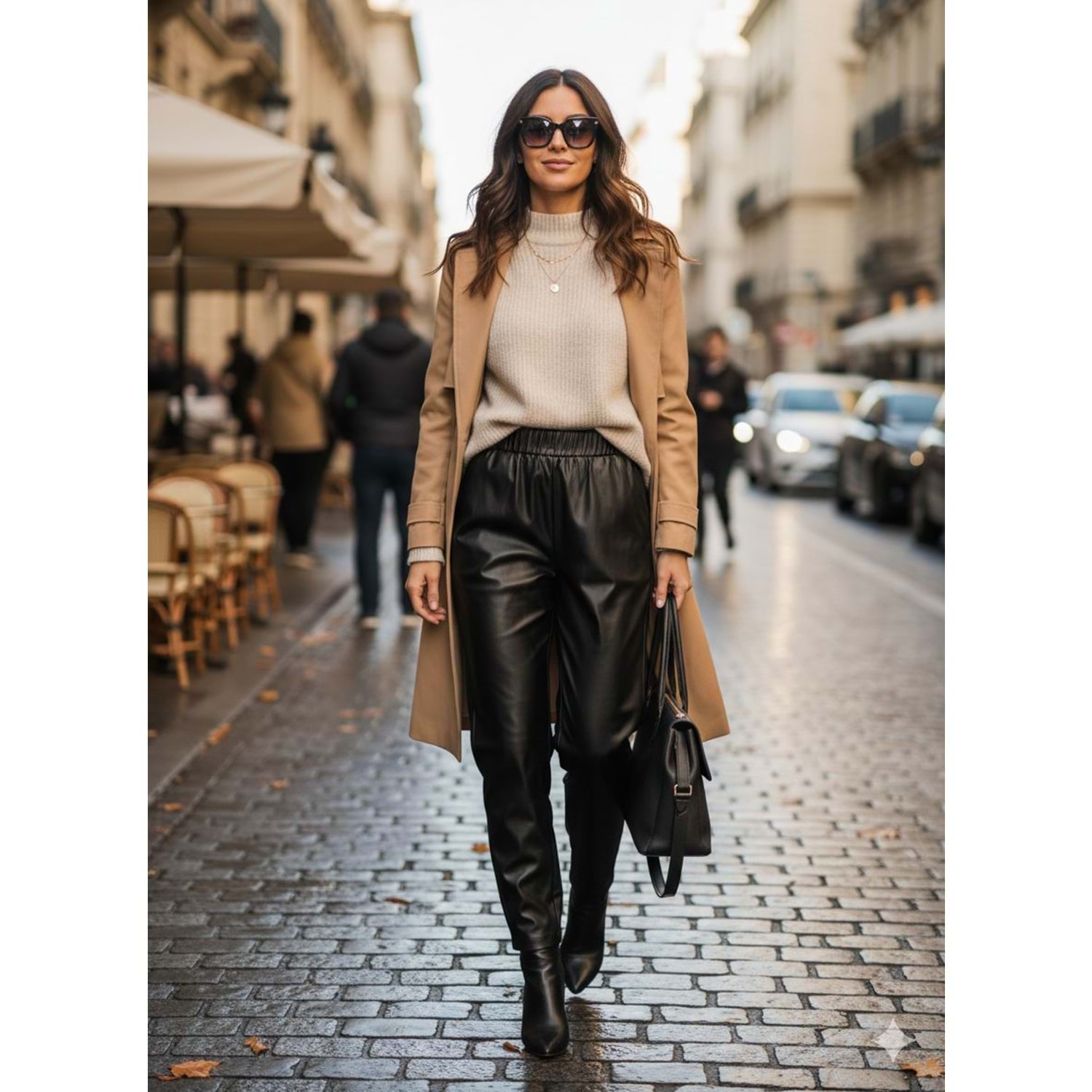 Şalvar Kesim Deri Pantolon 18270 - Siyah - S - AZRA07437-Siyah-S