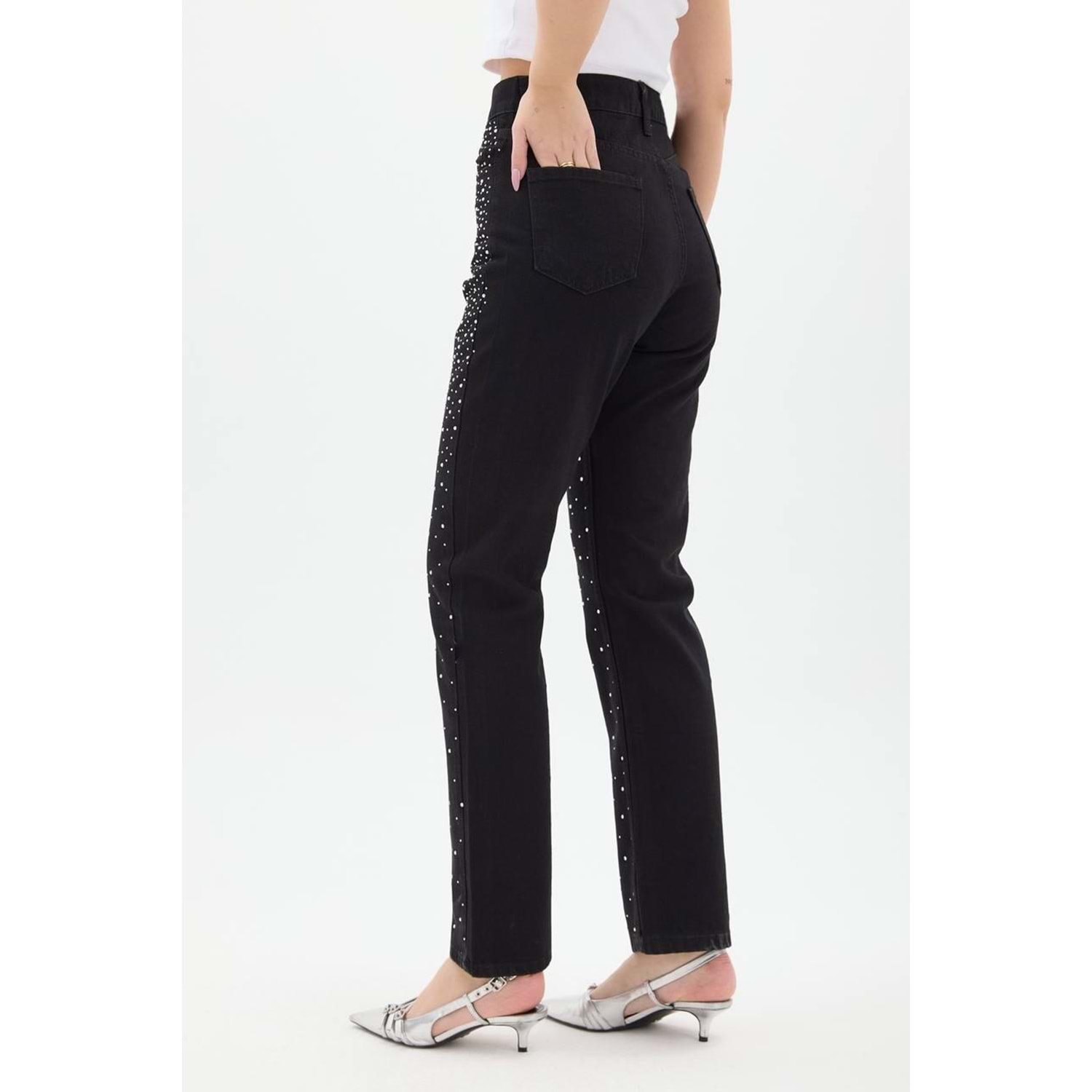 Taşlı Kot Pantolon 001 - Siyah - 38 - AZRA04088-Siyah-38