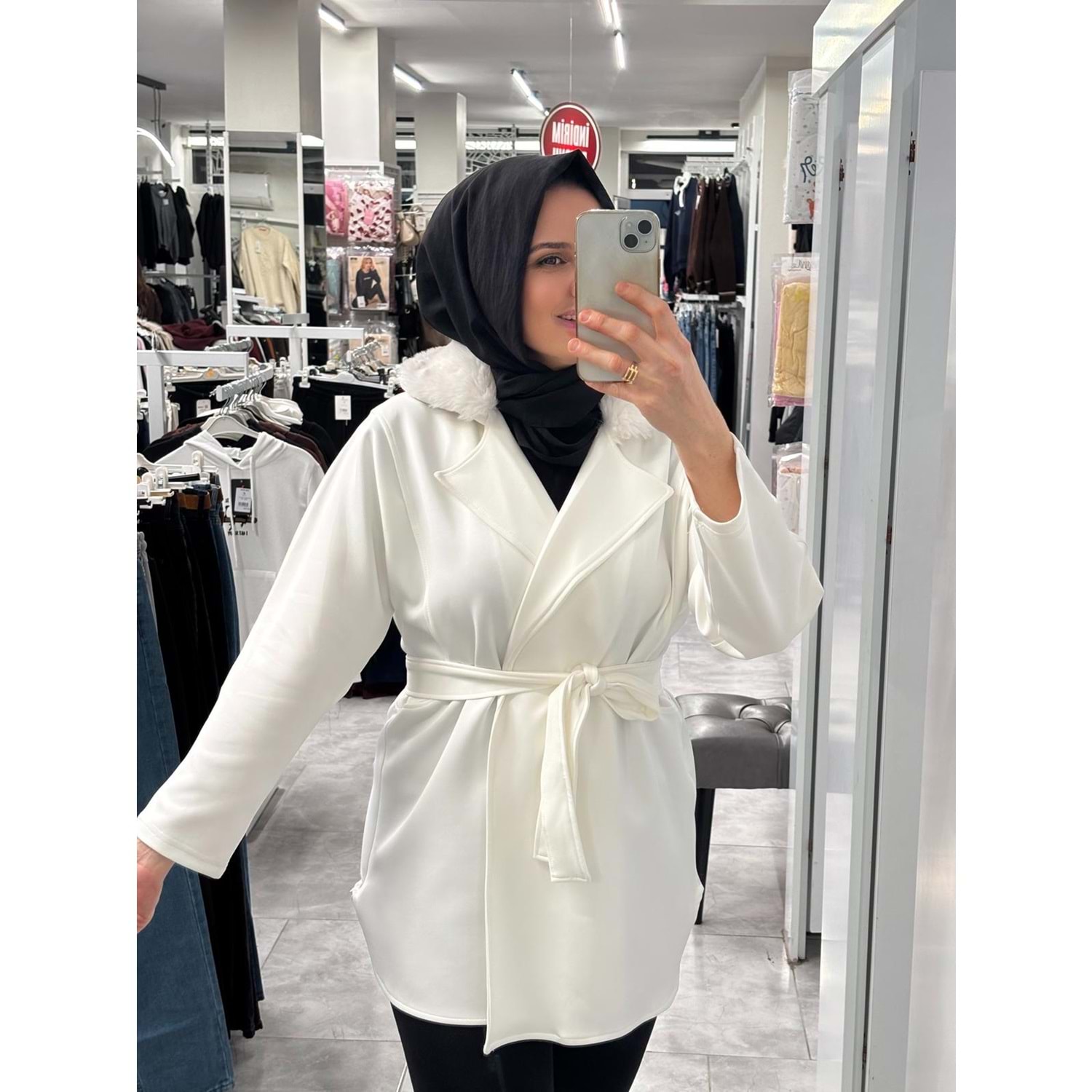 Yakası Kürklü Ceket 1094 - Beyaz - S-M - AZRA07218-57566