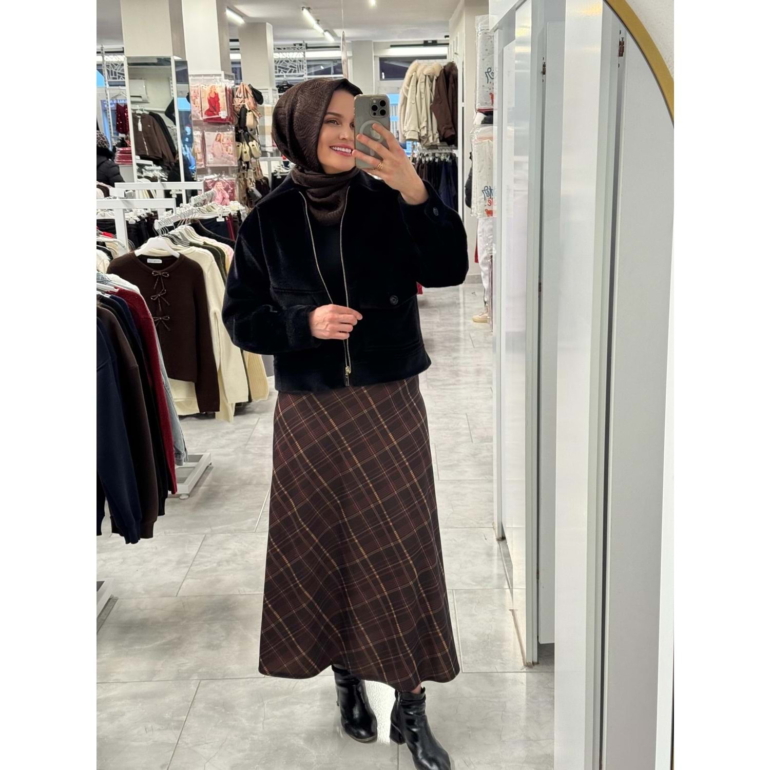 Çaprazlı Ekose Etek 1416 - Koyu Kahve - 48 - AZRA07628-59904