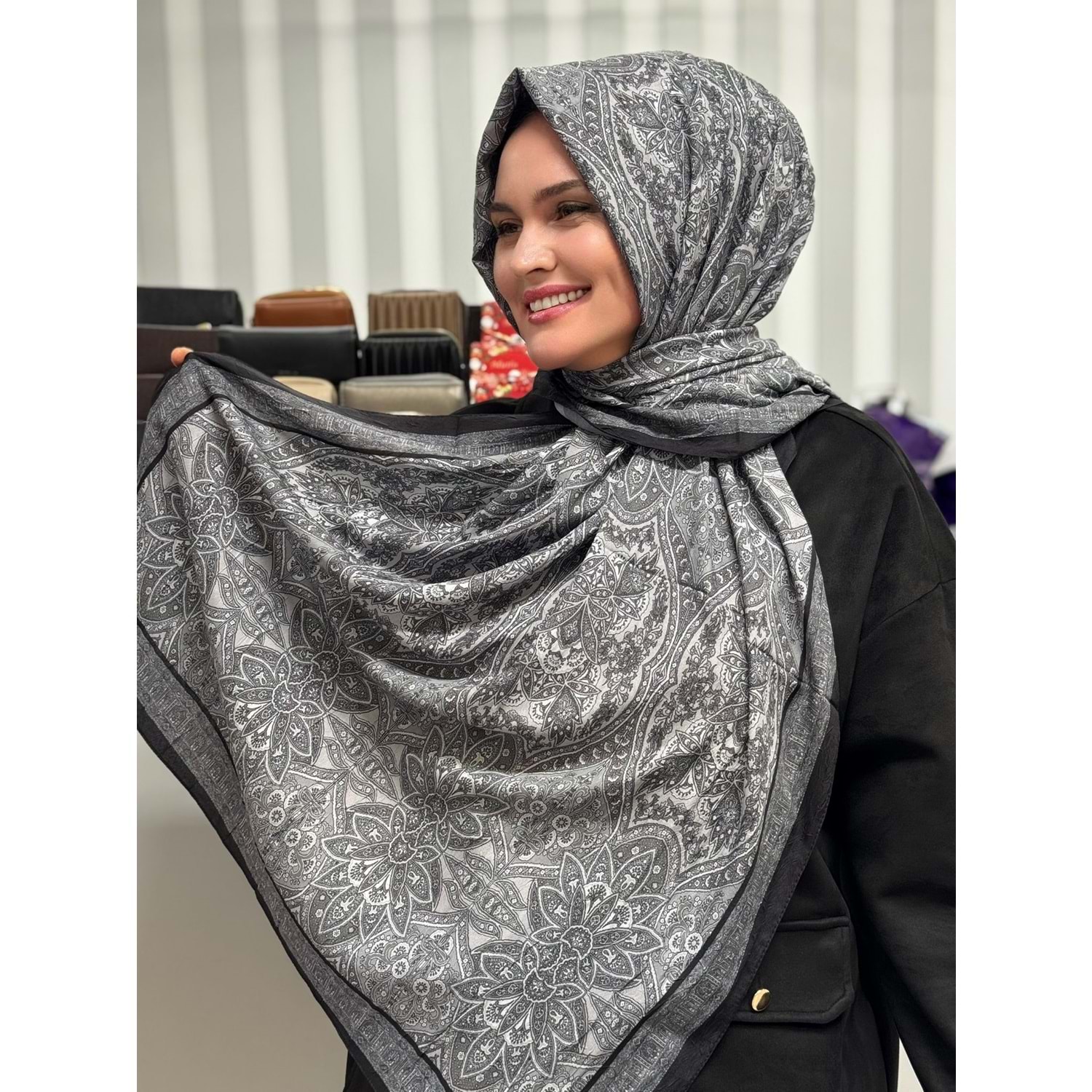 Küçük Etnik Desen Şal 1346 - Gri - TEK BEDEN - AZRA07682-60054