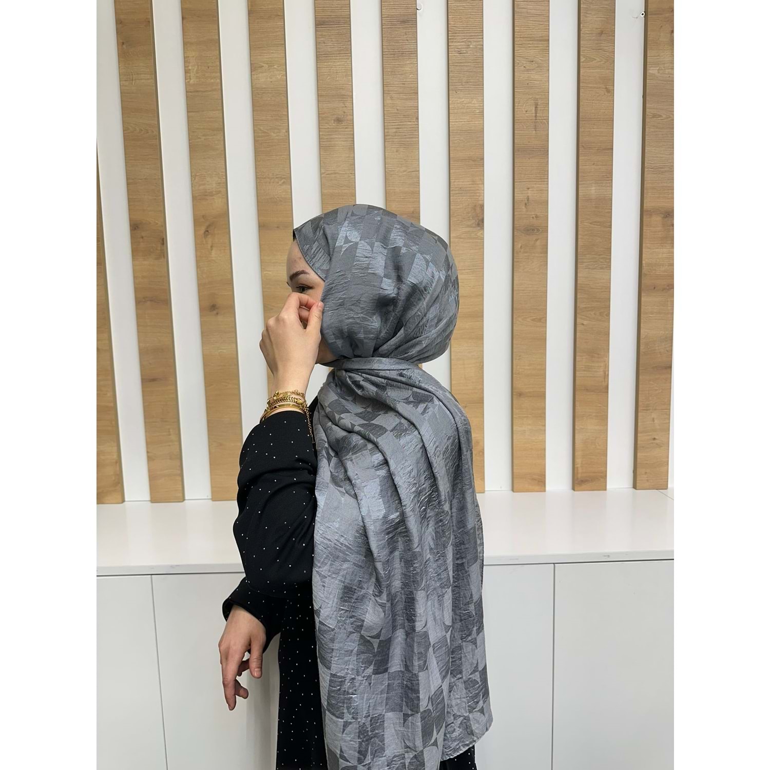 Oval Desenli Aerobin Şal 1112 - Gri - TEK BEDEN