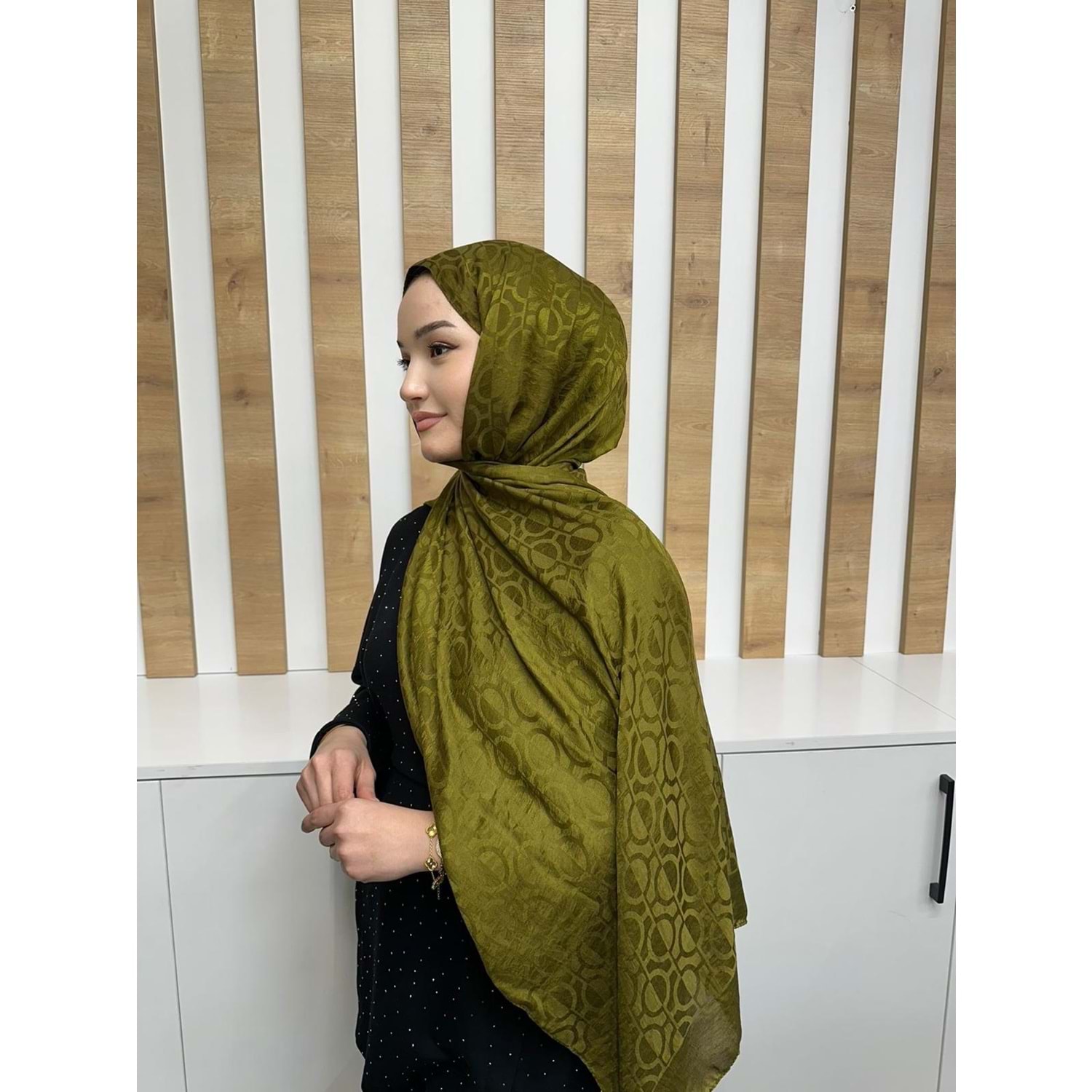Oval Desenli Aerobin Şal 1112 - Haki - TEK BEDEN