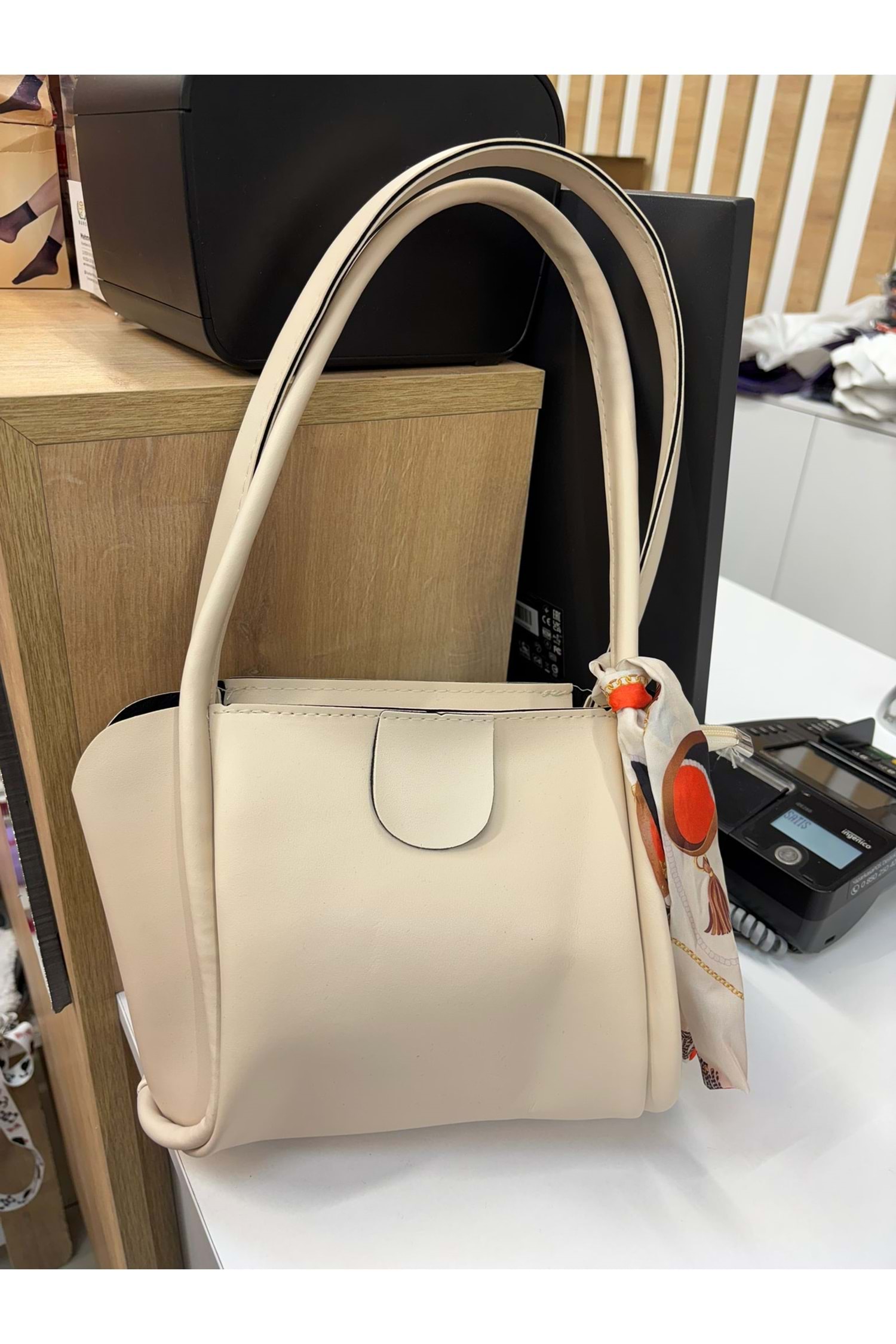 Uzun Kulplu Fularlı Çanta 1739 - Bej - TEK BEDEN