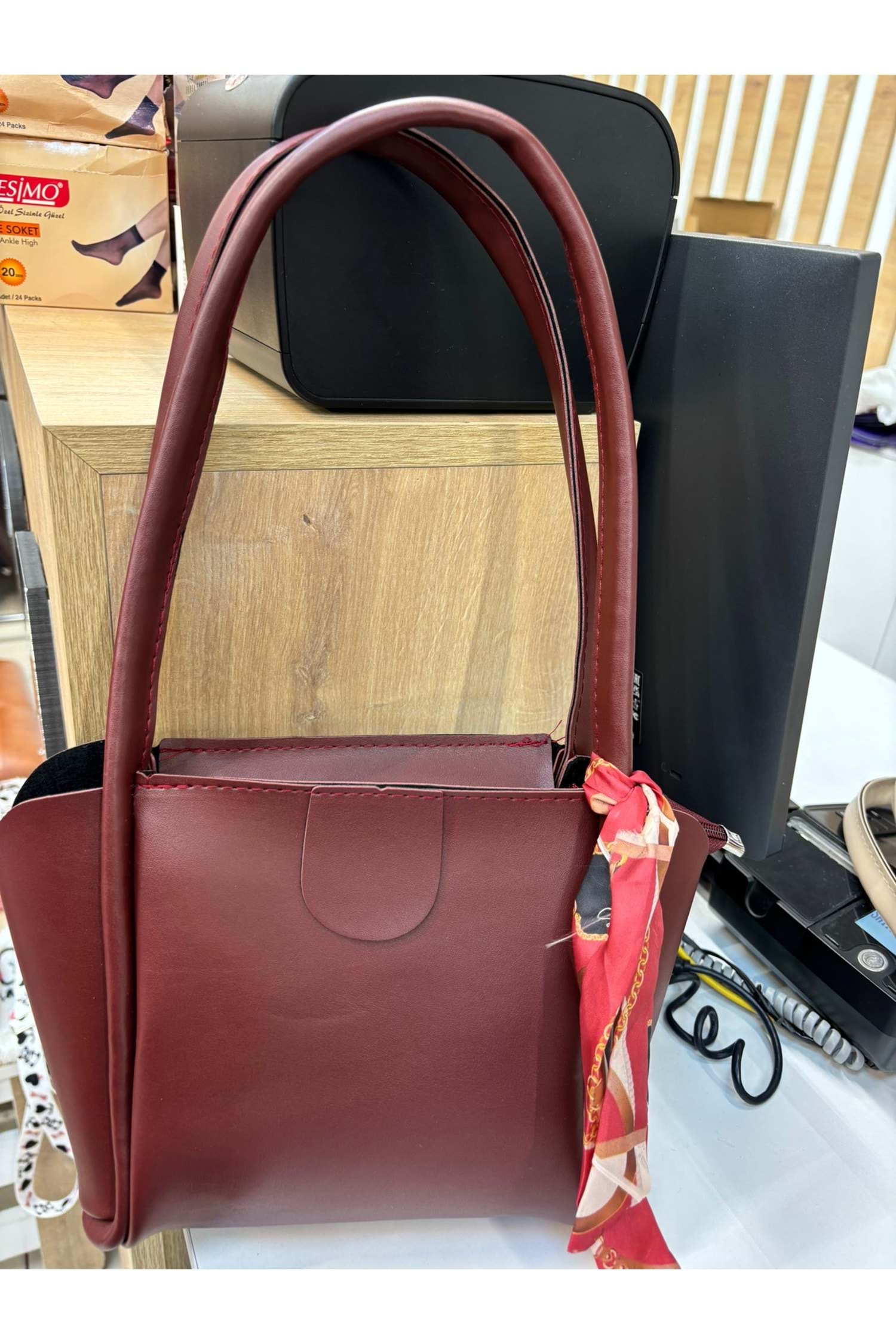 Uzun Kulplu Fularlı Çanta 1739 - Bordo - TEK BEDEN