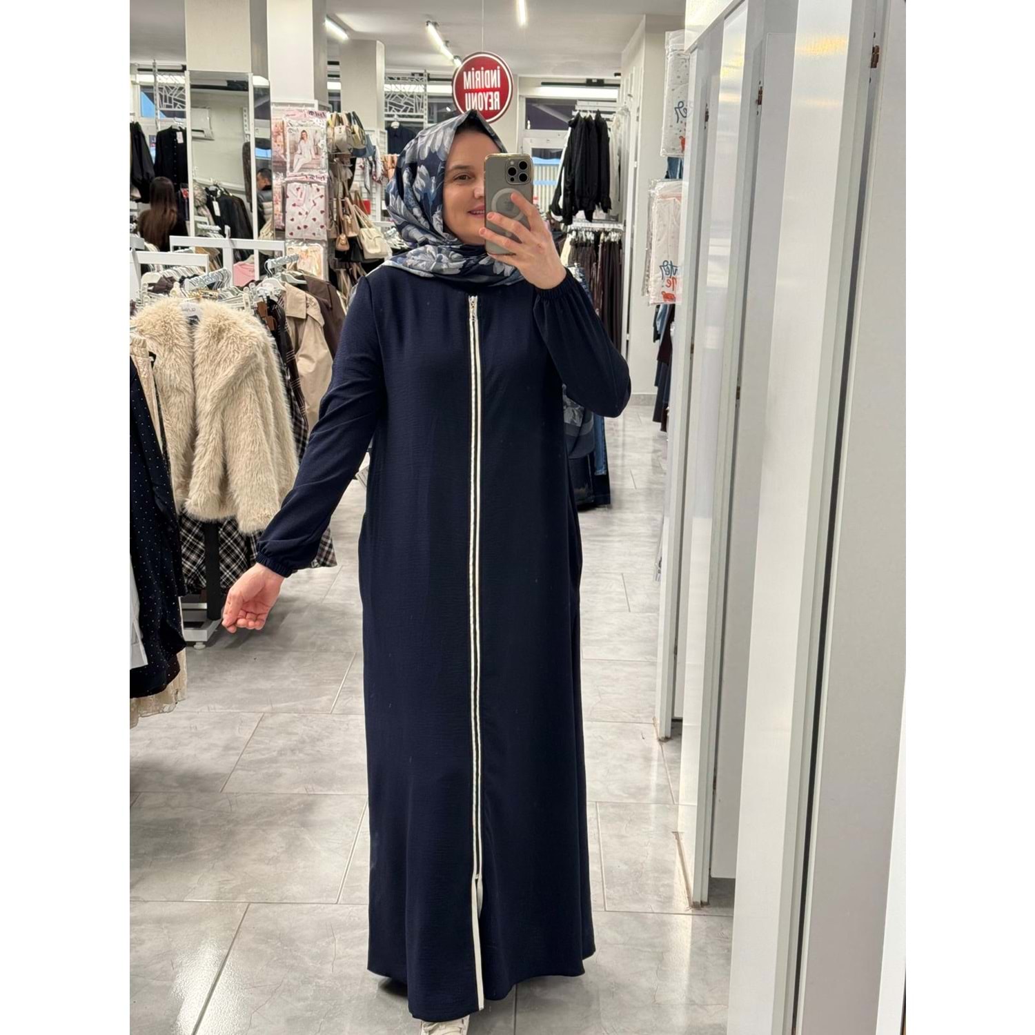 Şeritli Ferace 1404 - Lacivert - 46-48 - AZRA07935-62168