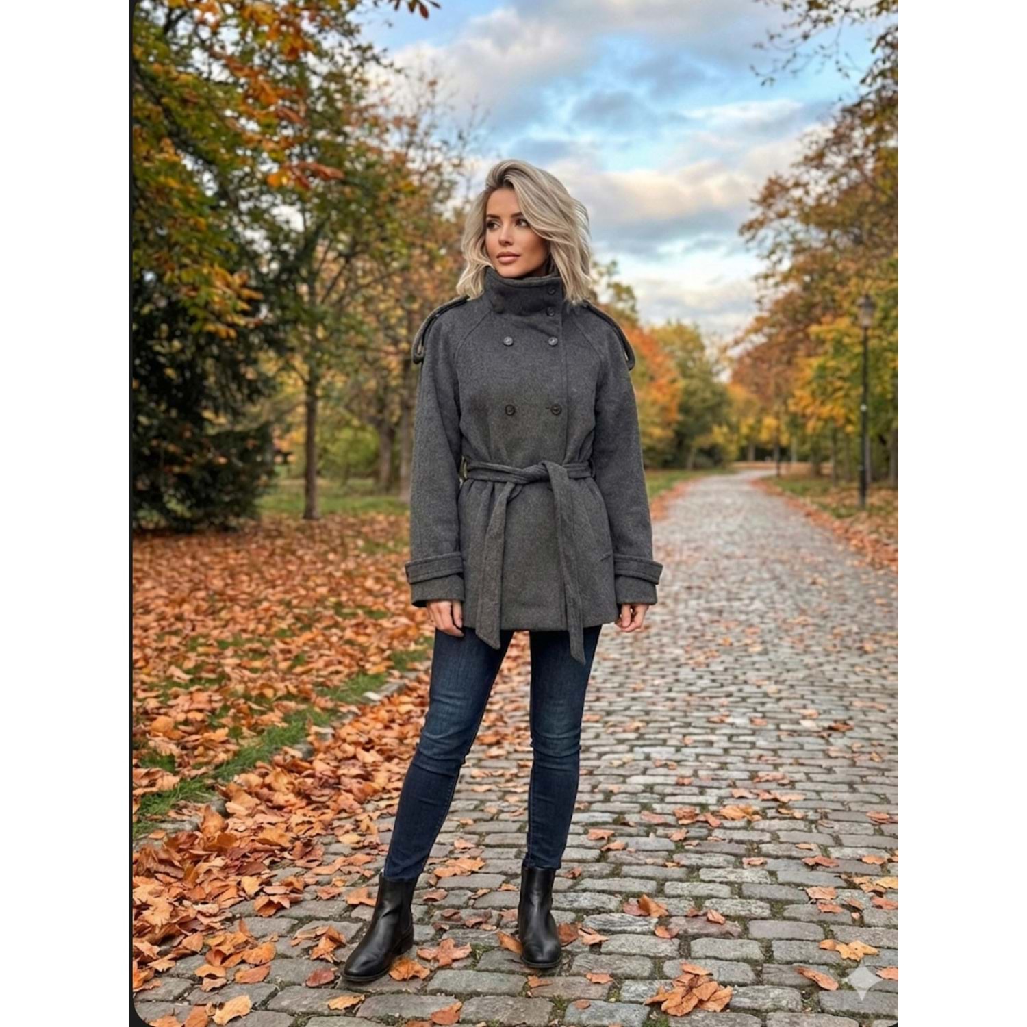 Dik Yakalı Kaşe Kaban 7676 - Antrasit - M - AZRA07461-Antrasit-M