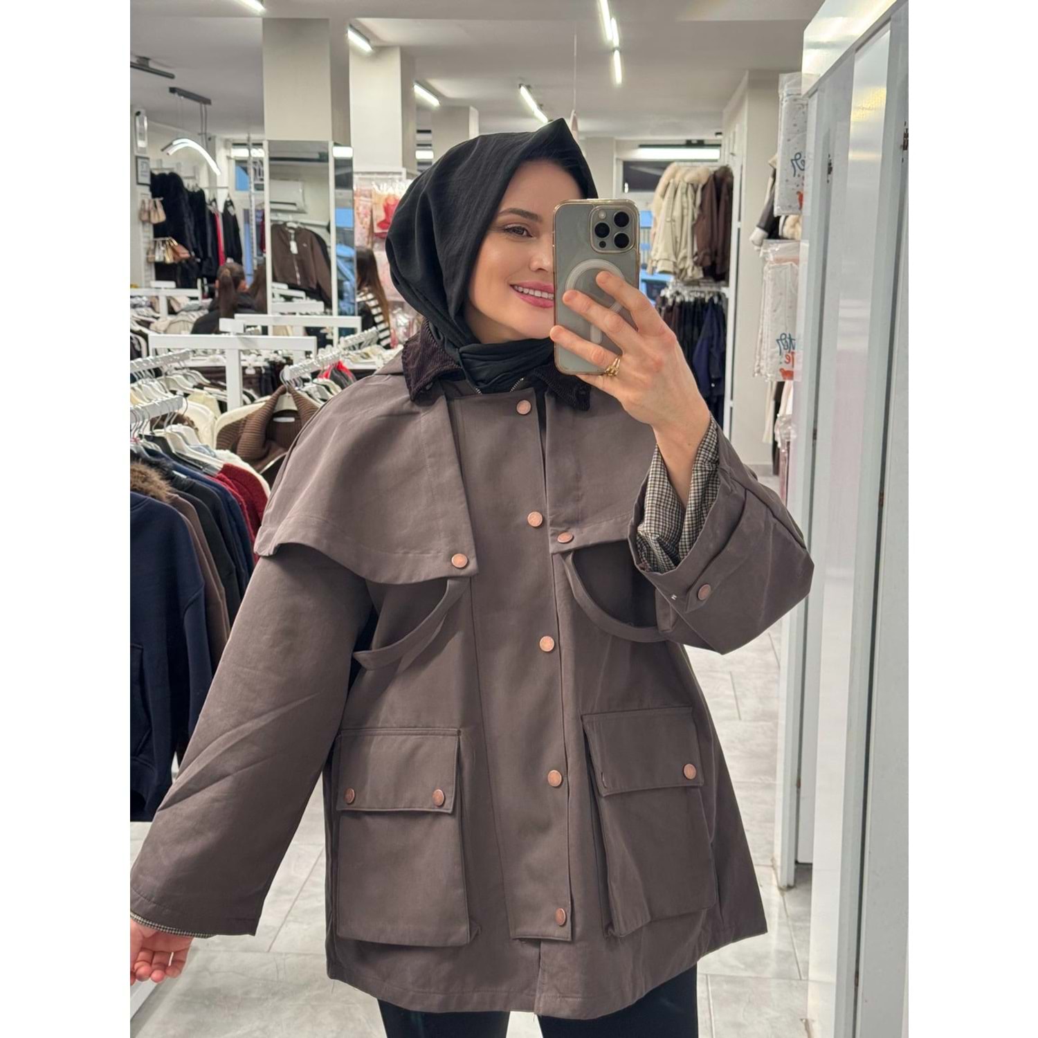 Pelerinli Kaban 250630 - Kahve Rengi - L