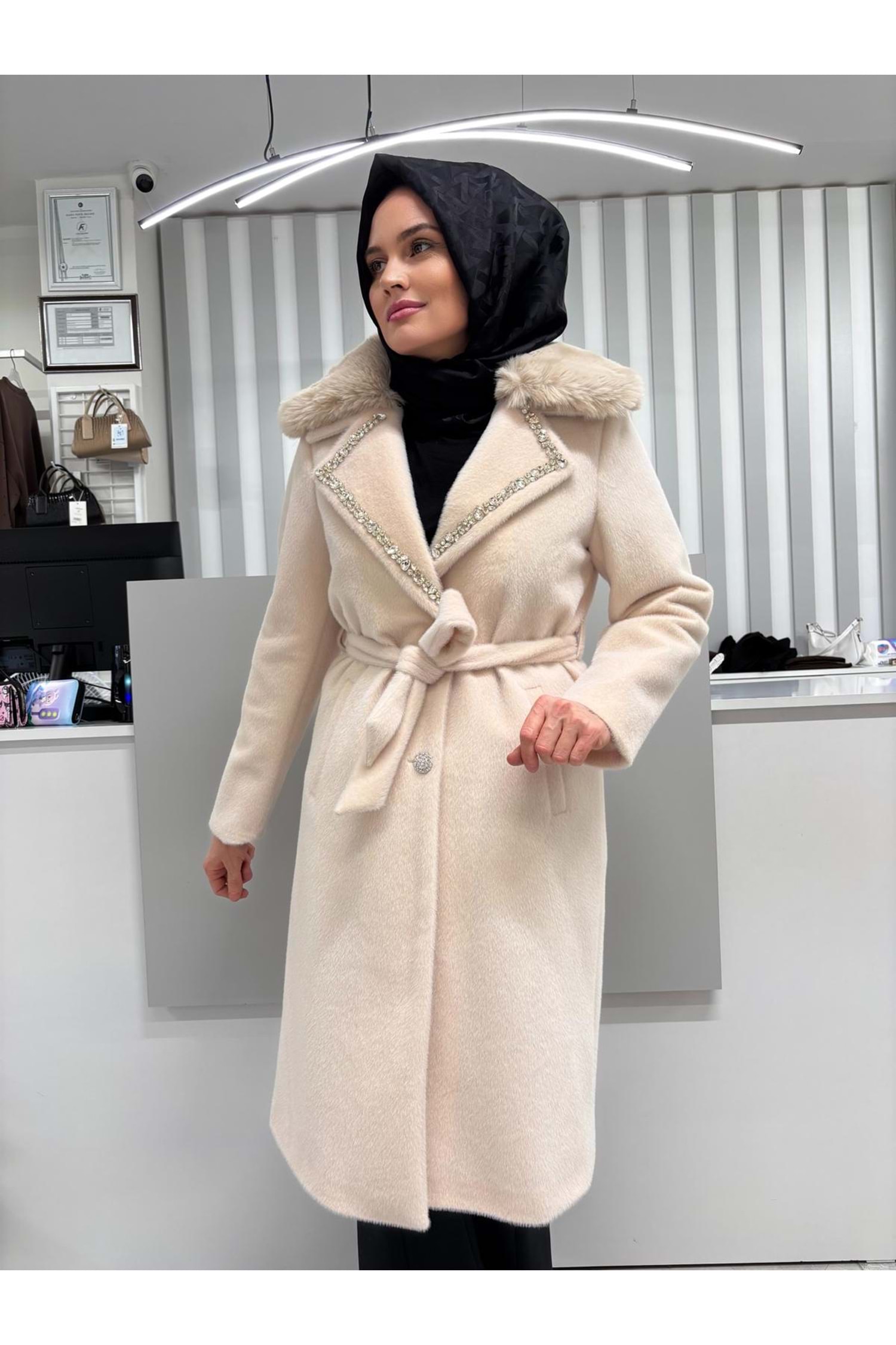 Yakası Taşlı Kaban 9016 - Krem - 46