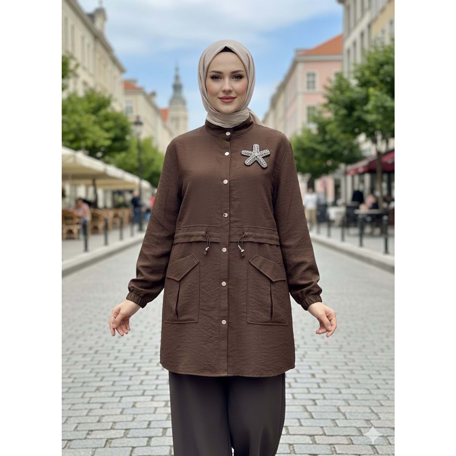 Çiçek Taşlı Kap 10741 - Acı Kahve - L - AZRA07438-Acı Kahve-L