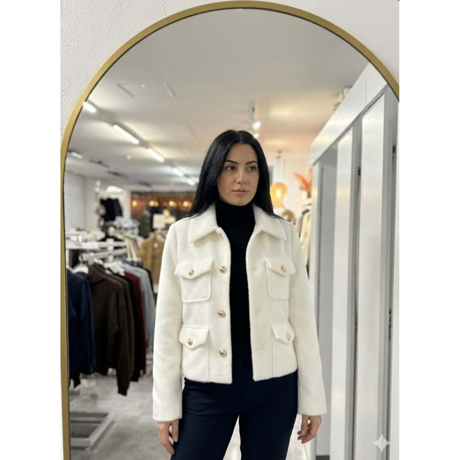 Cep Ve Düğme Detaylı Mont 1005254 - Ekru - M - AZRA07384-Ekru-M