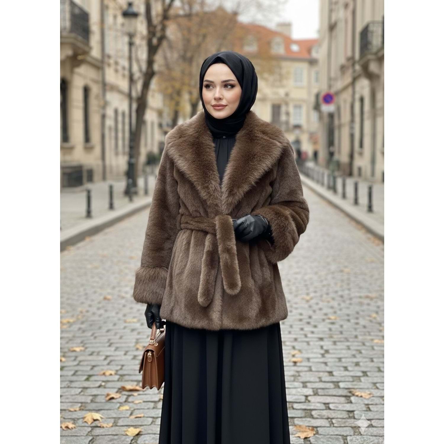 İthal Kürk Mont 99679 - Kahve Rengi - TEK BEDEN