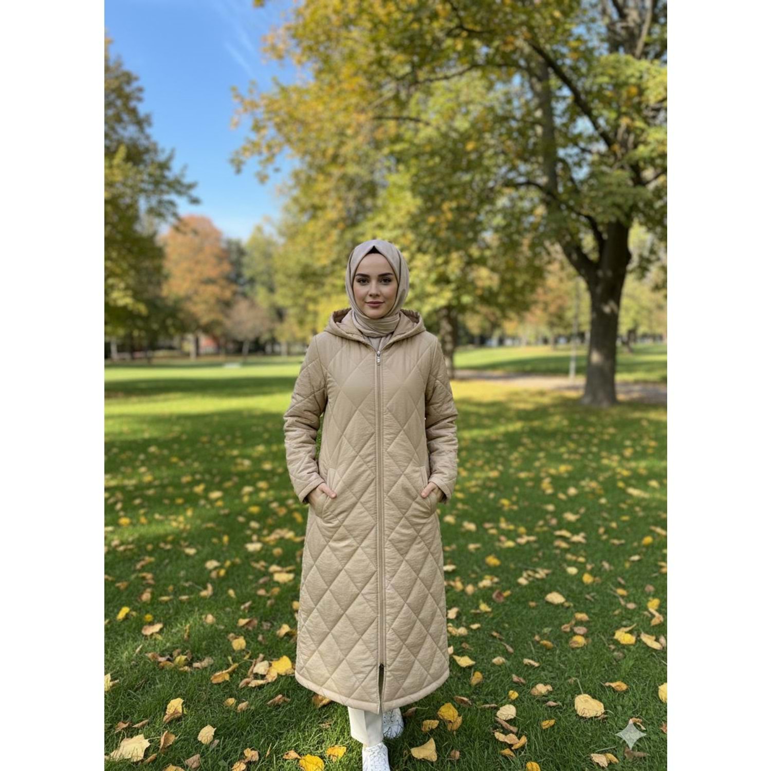Kapişonlu Kapitone Mont 8407 - Bej - 38 - AZRA03858-Bej-38