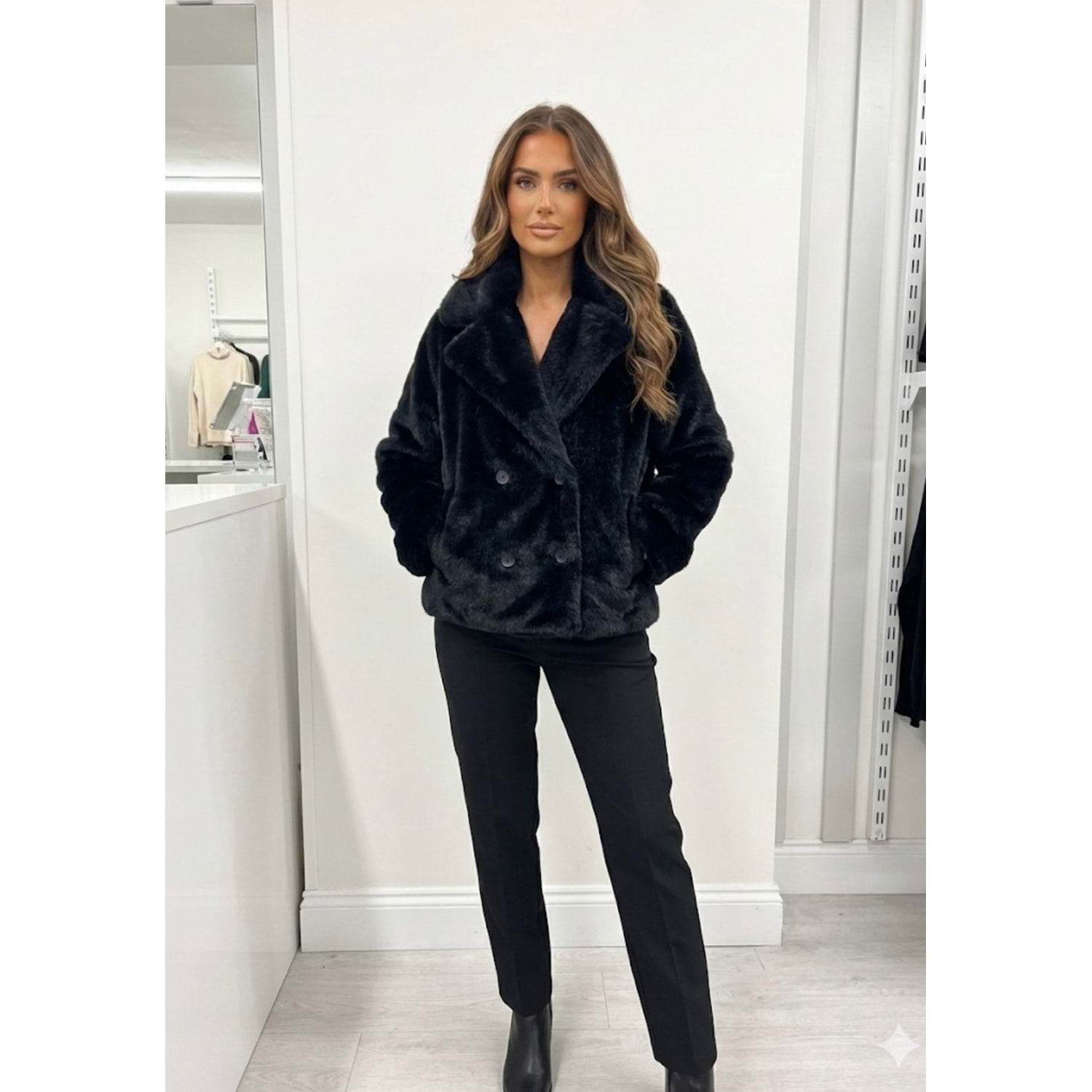 Kavuze Kürk Ceket 1005108 - Siyah - S-M - AZRA07381-Siyah-S-M