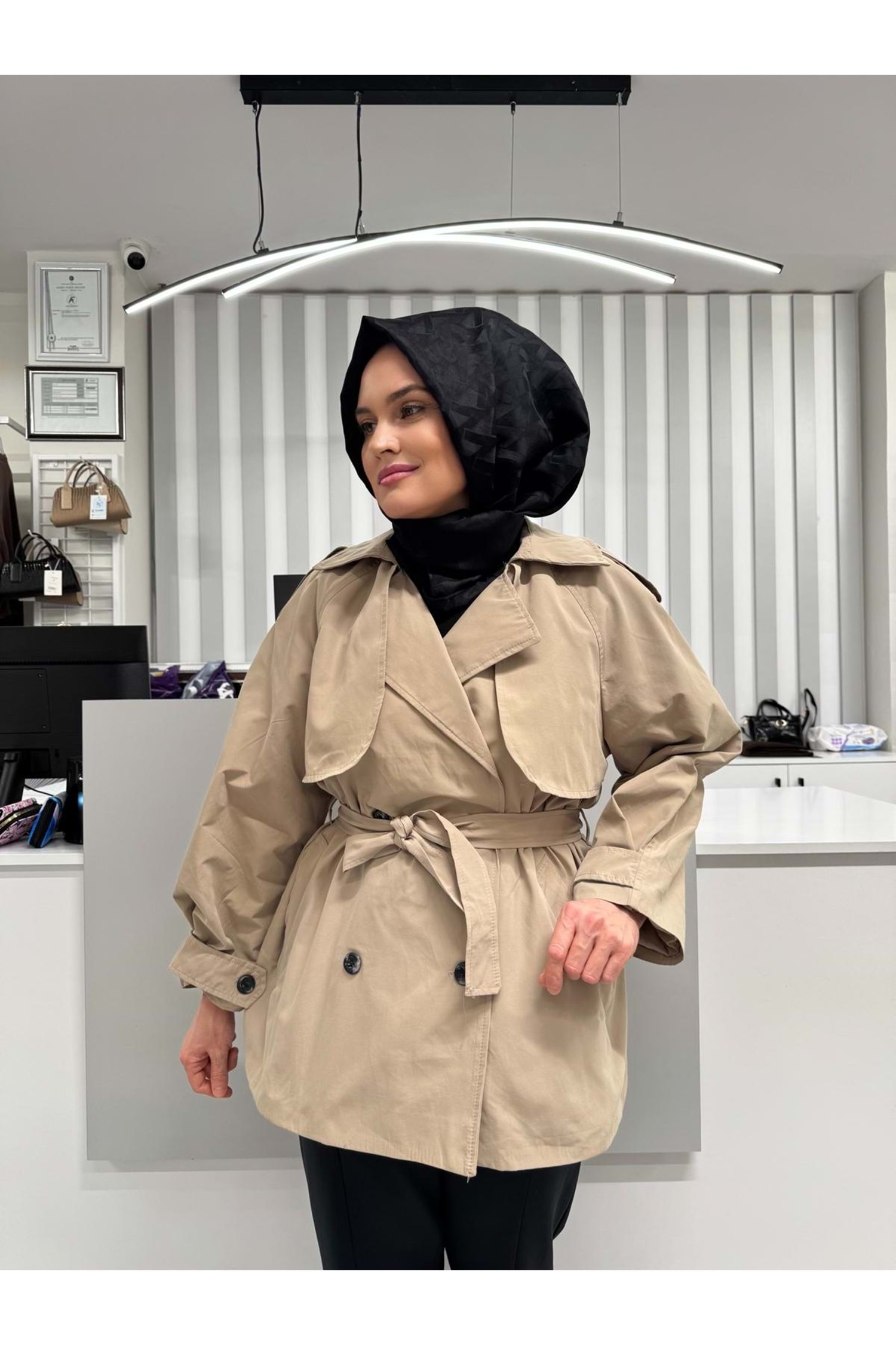 Allerli Lüks Trençkot 7556 - Bej - TEK BEDEN