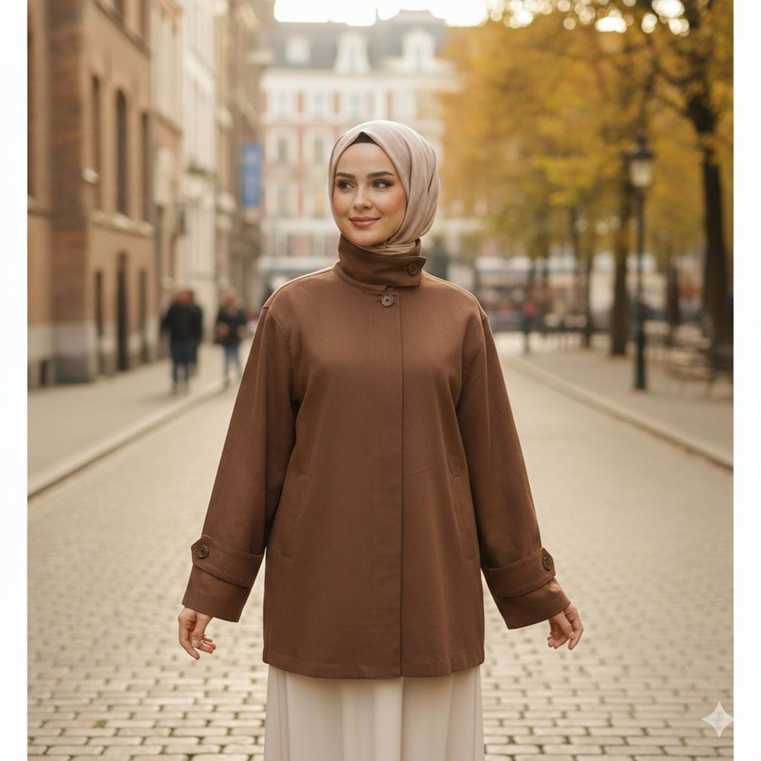 Dik Yaka Kısa Trenç 670 - Acı Kahve - TEK BEDEN - AZRA07111-56972