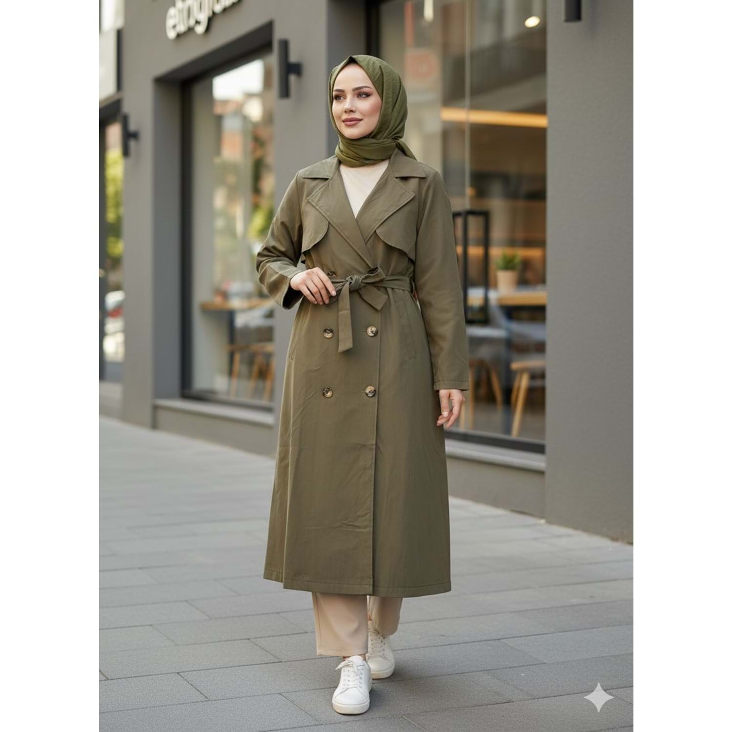 Kuşaklı Trenç 1301 - Haki - L - AZRA07812-61170
