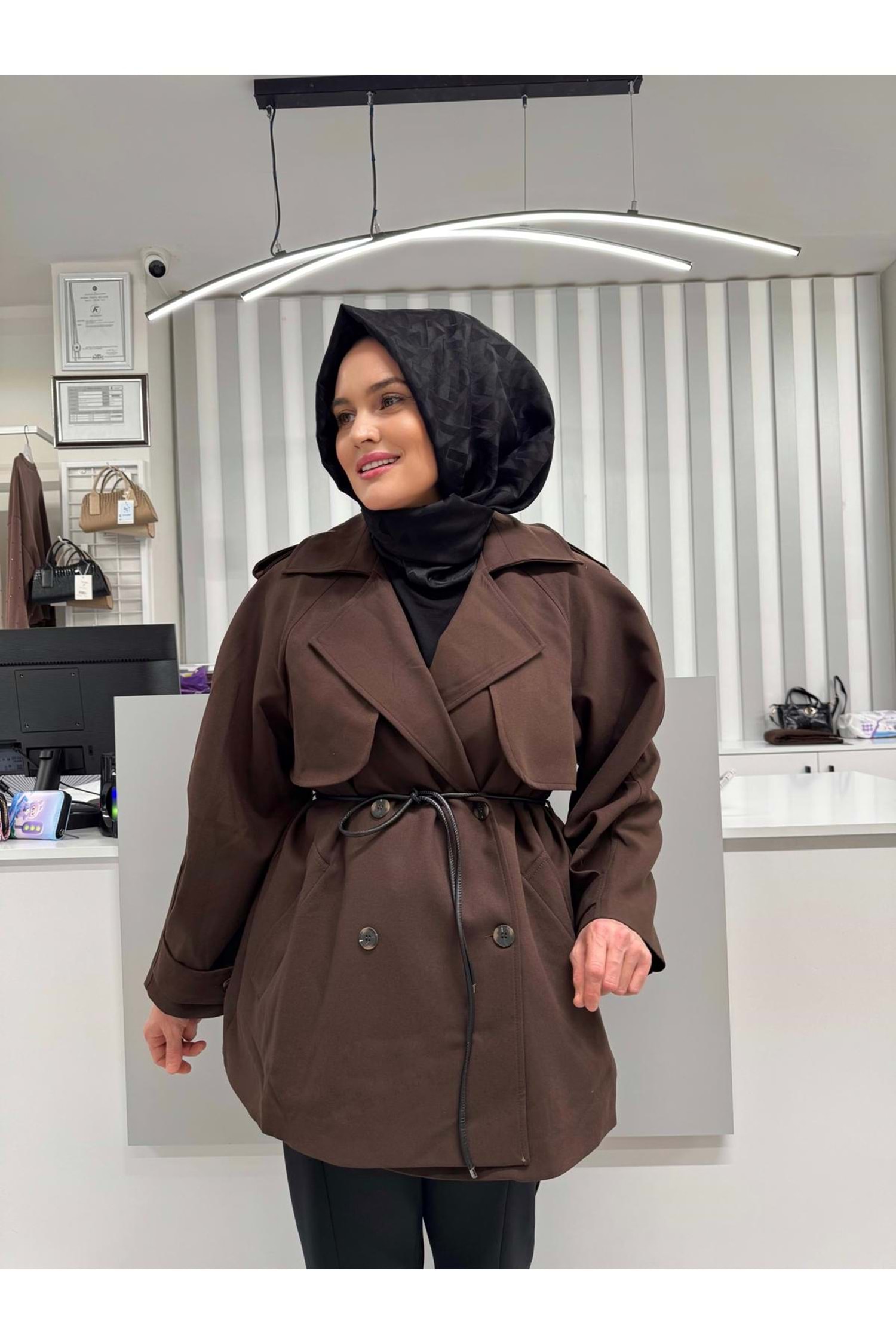 Premium Kalite Trençkot 7488 - Acı Kahve - TEK BEDEN