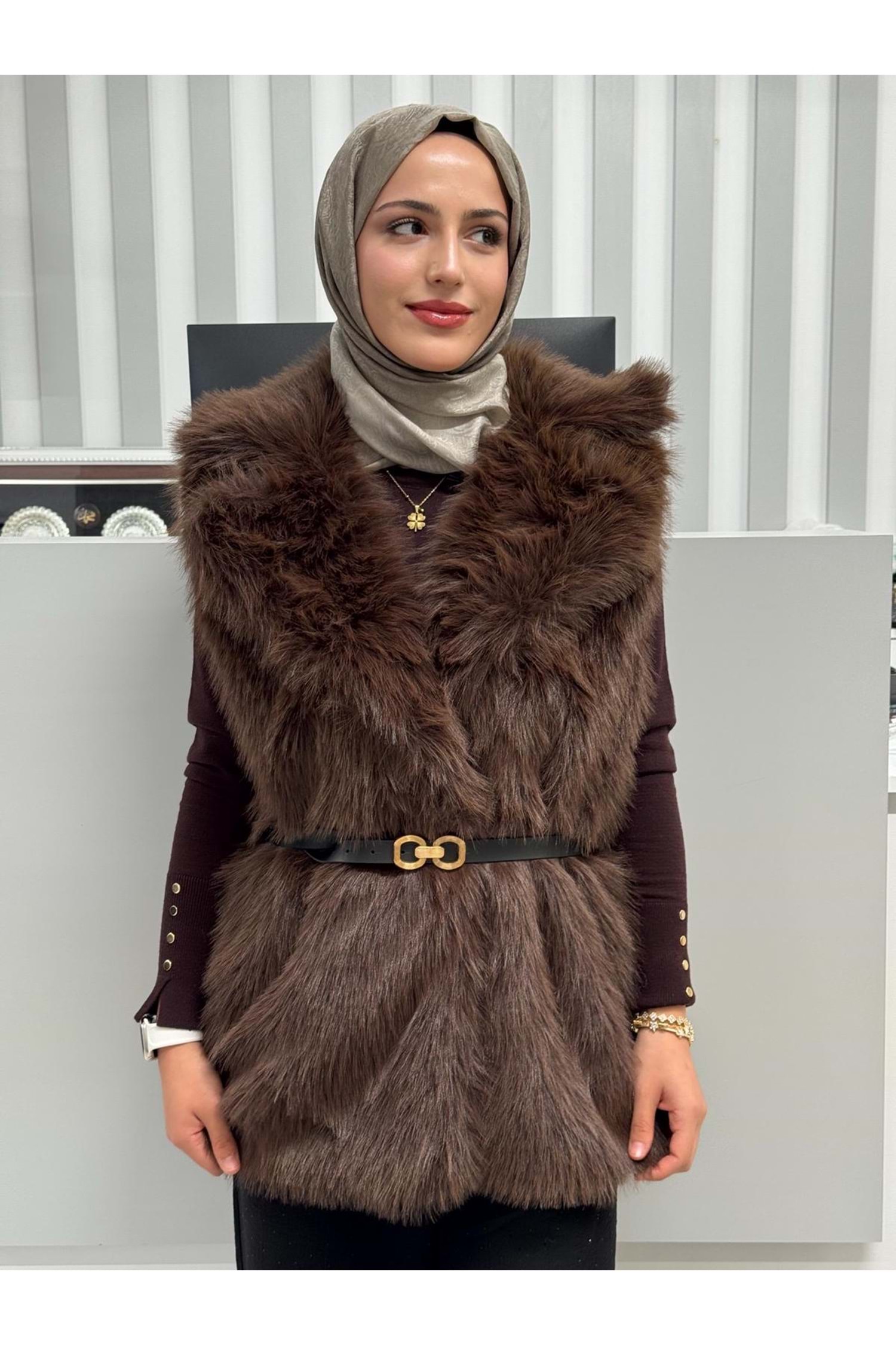 Kemerli Lolita Yelek 11155 - Acı Kahve - 40