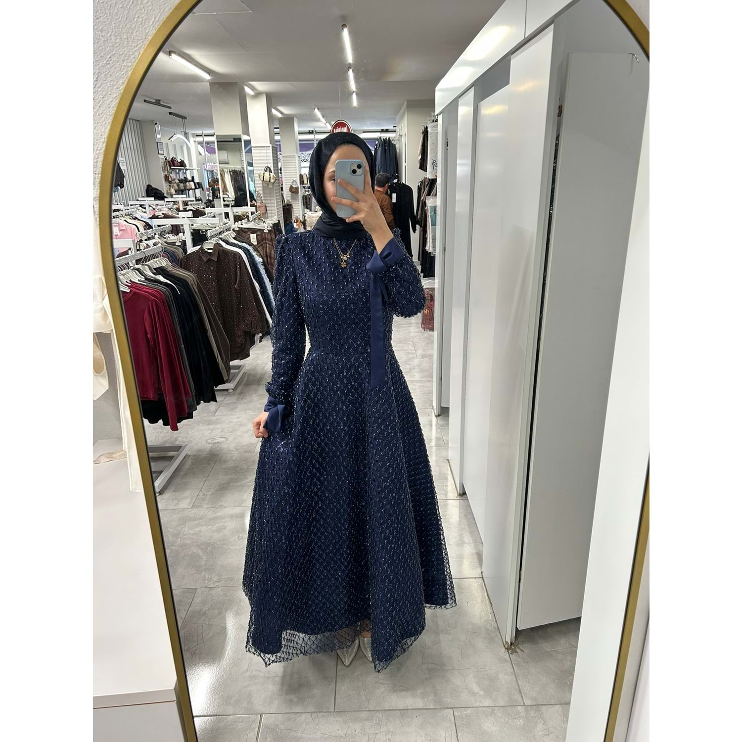 Boncuklu Prenses Abiye Elbise 17014 - Lacivert - 40