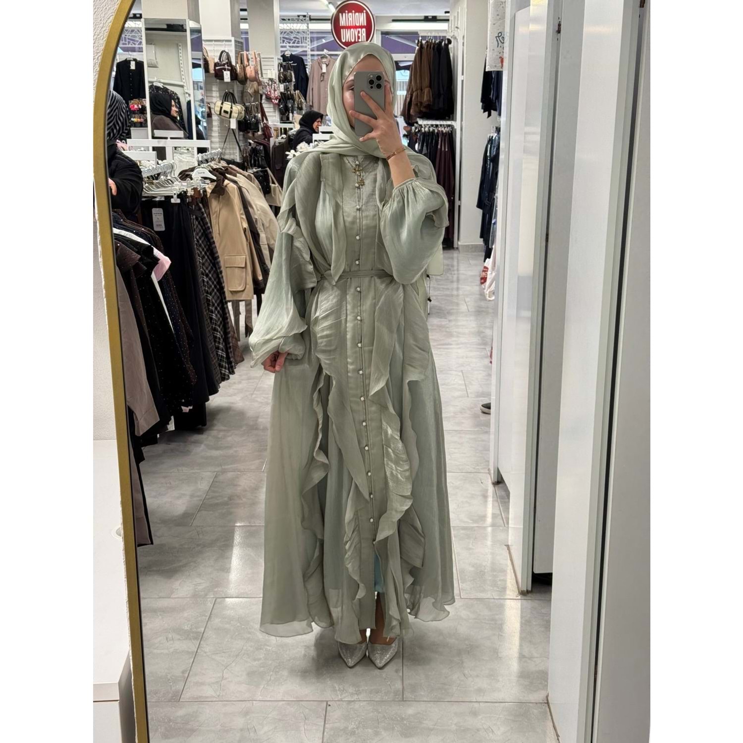 Janjan Fırfırlı Elbise 5748 - Mint Yeşili - TEK BEDEN