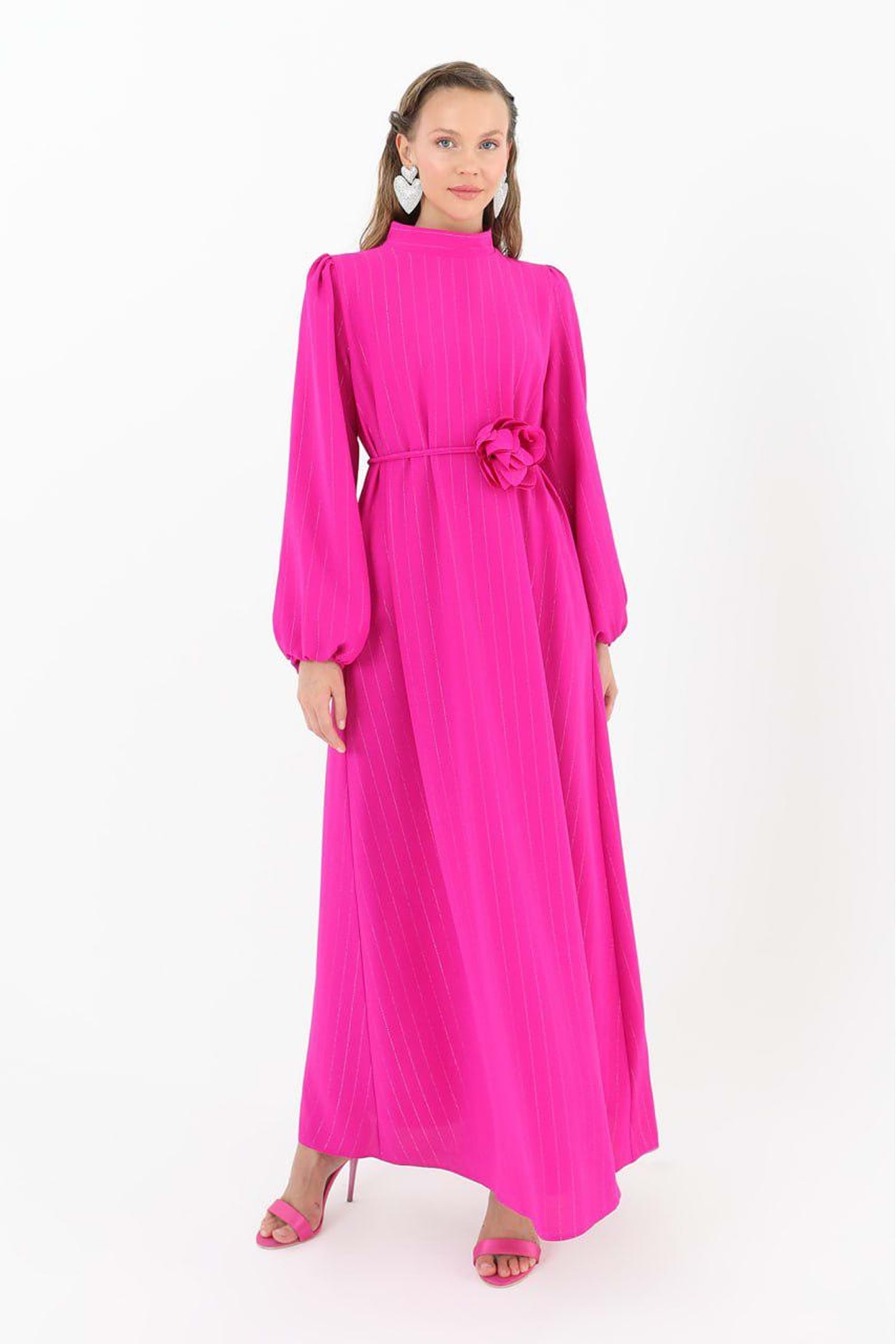 Puane Sim Çizgili Güllü Abiye 12541 - Fuşya - 38