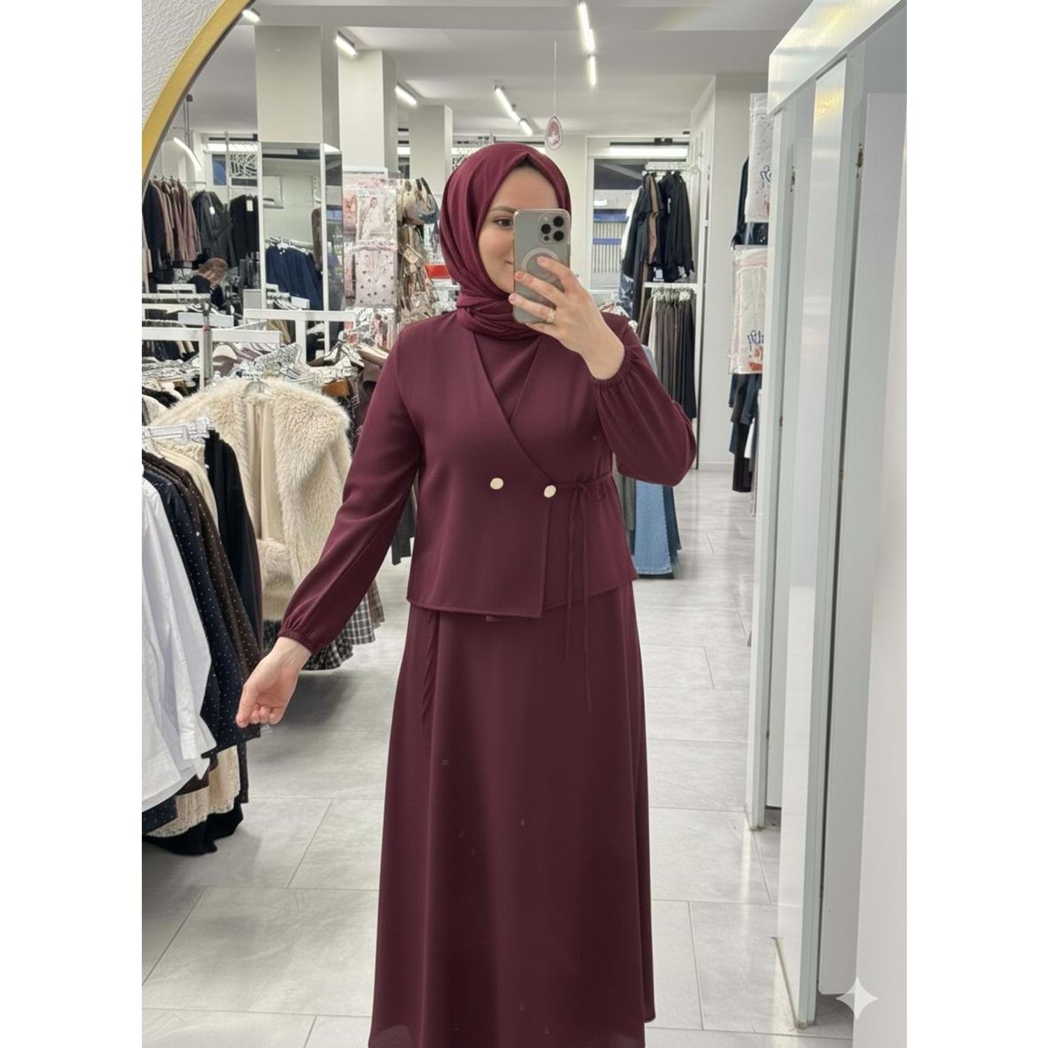 Dabıl Yelekli Elbise 1217 - Mürdüm - S