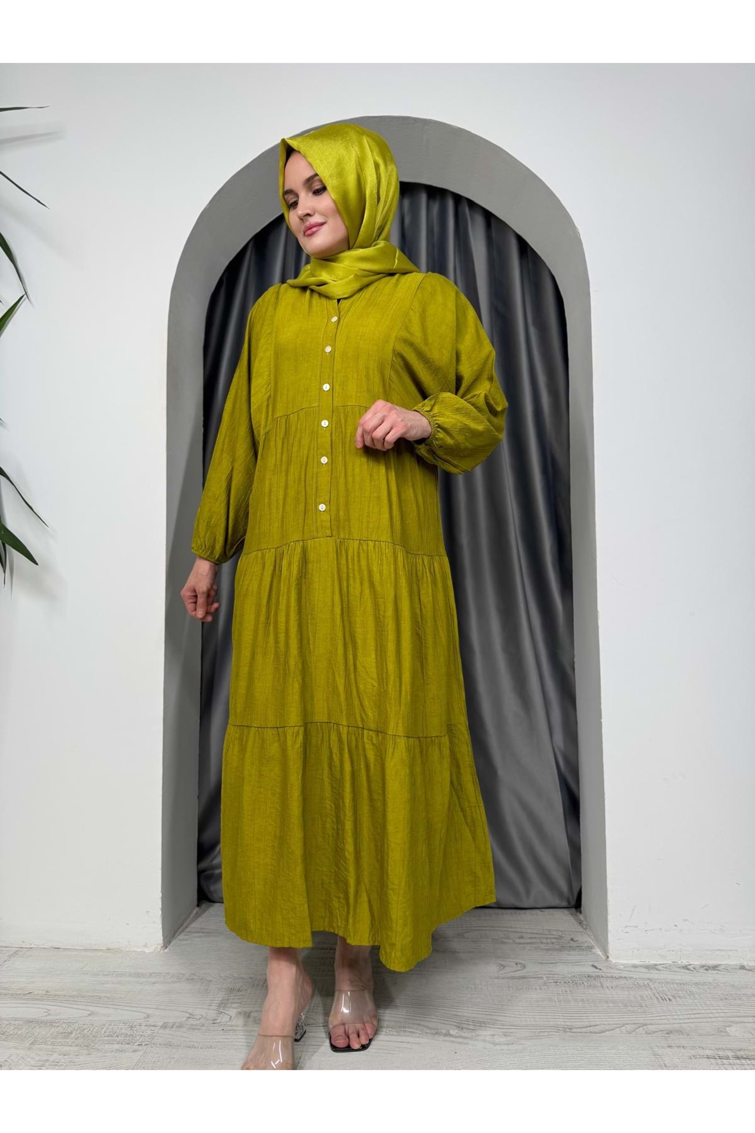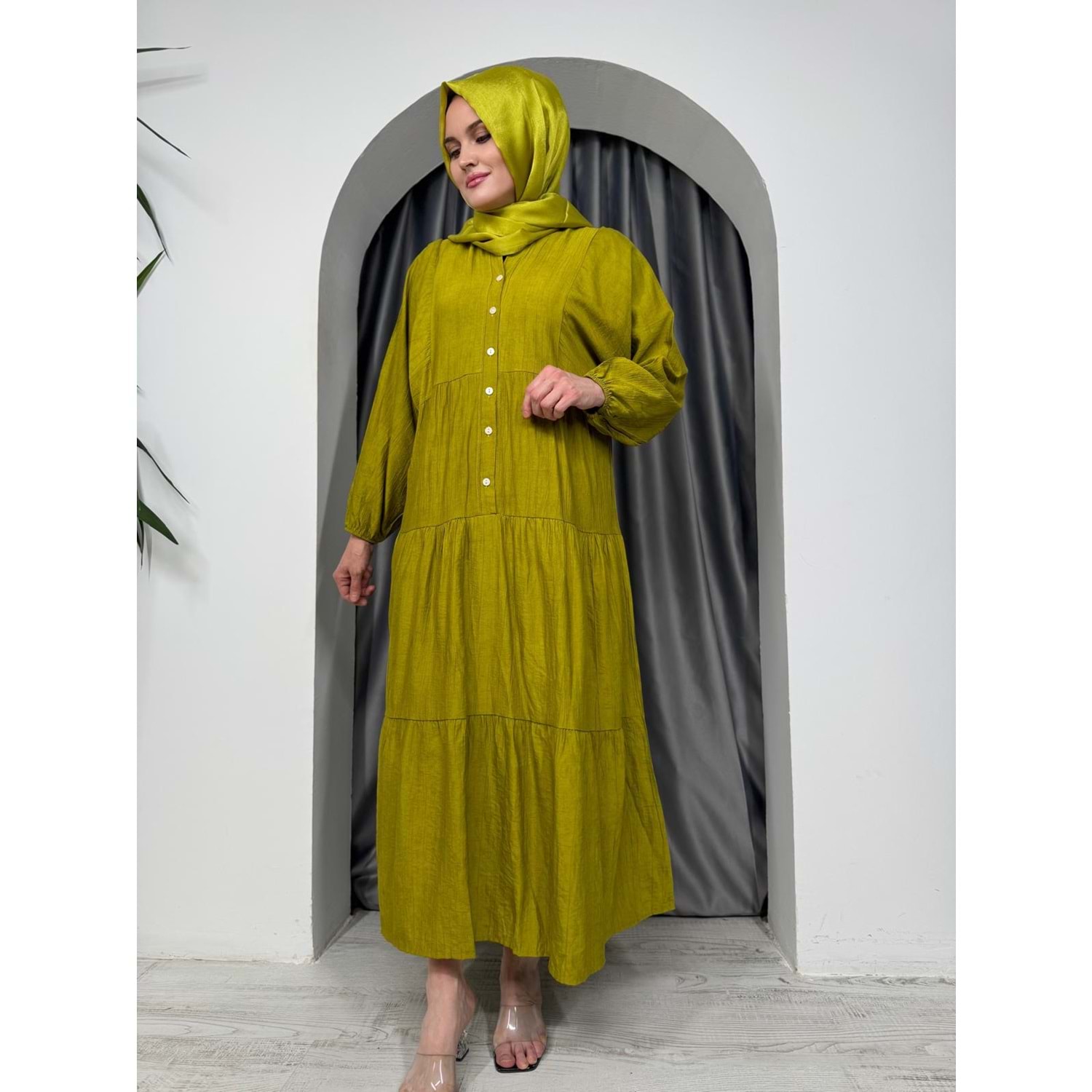 Düğmeli Kat Kat Elbise 2385 - Yağ Yeşili - S-M