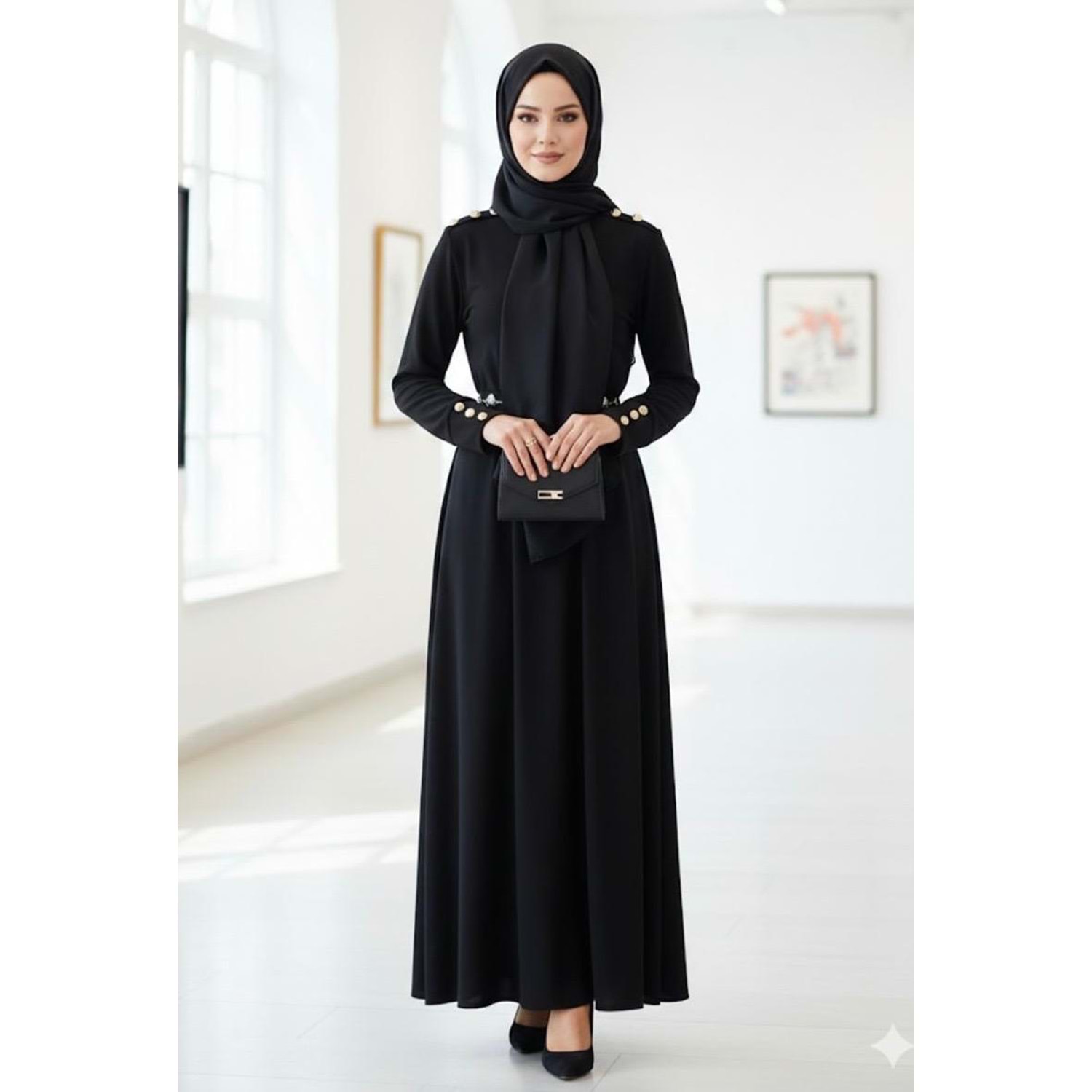 Omuzu Düğmeli Elbise 1087 - Siyah - M