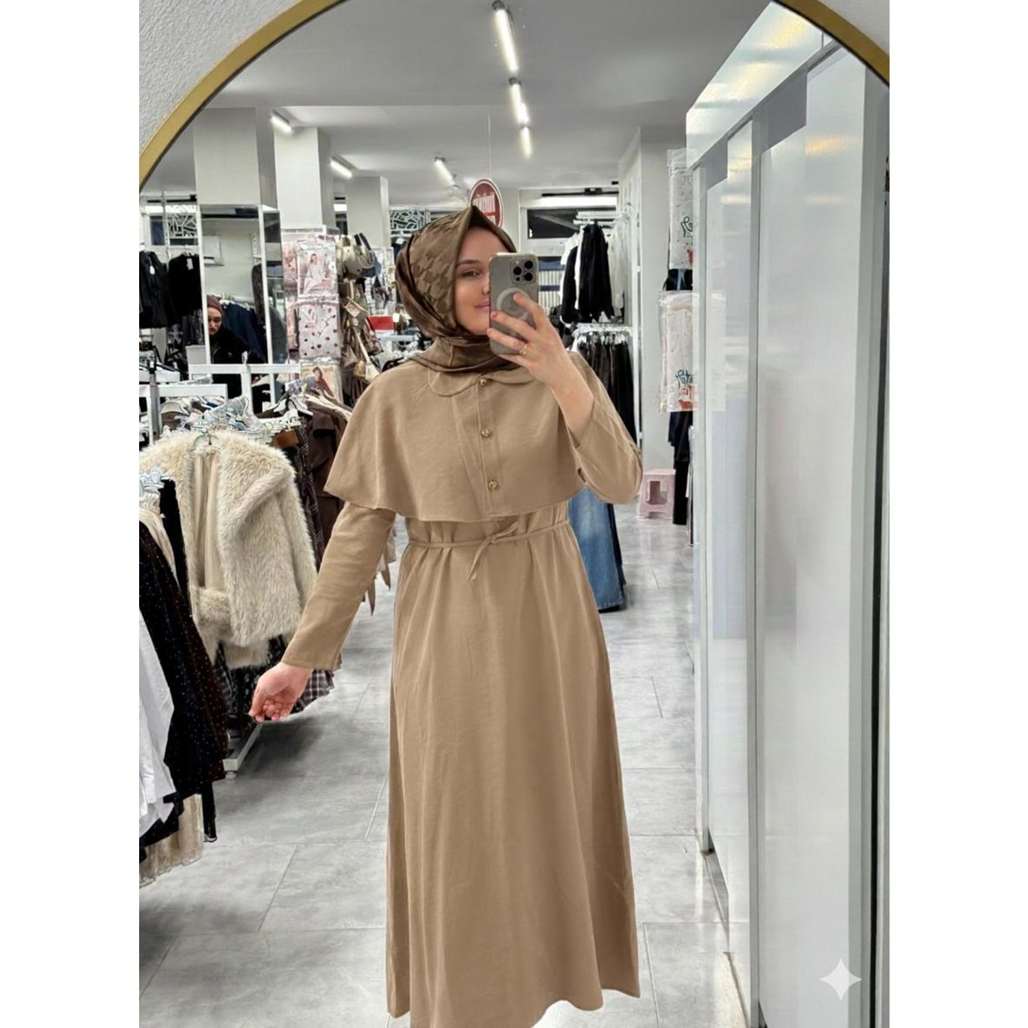 Pelerinli Elbise 1292 - Vizon - M