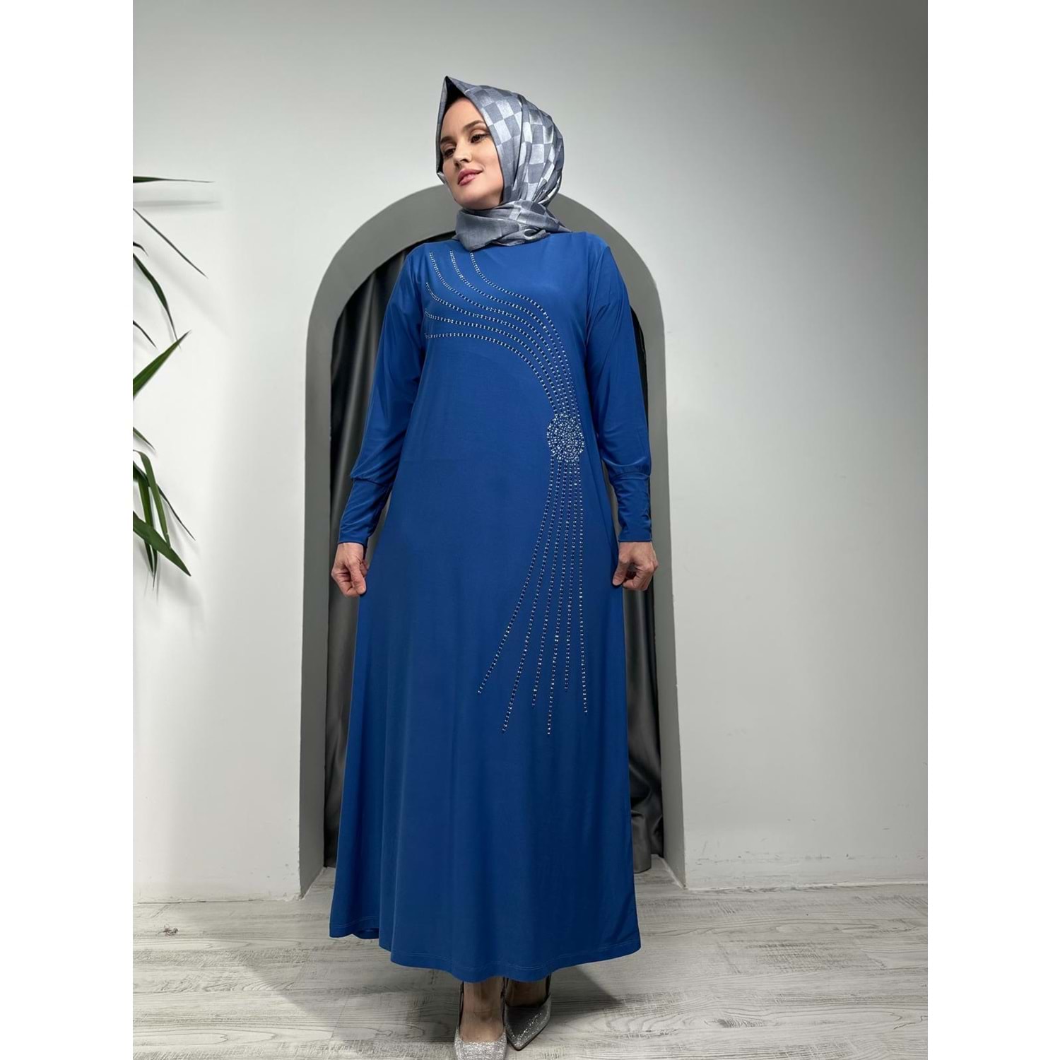 Sarmaşık Desen Sendy Elbise - Mavi - 42-44