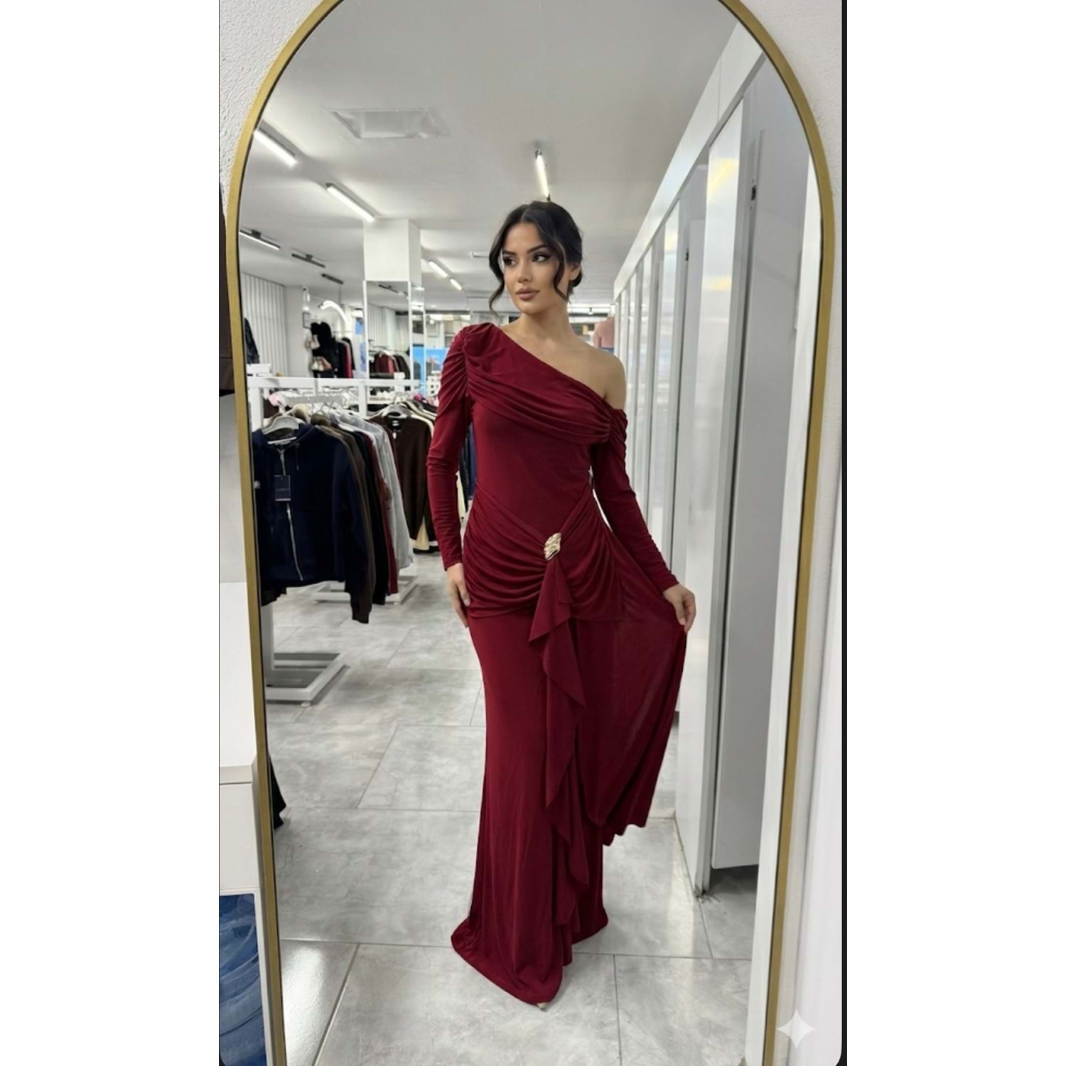 Tek Omuz Aksesuarlı Elbise 1430 - Bordo - S - AZRA07496-59238