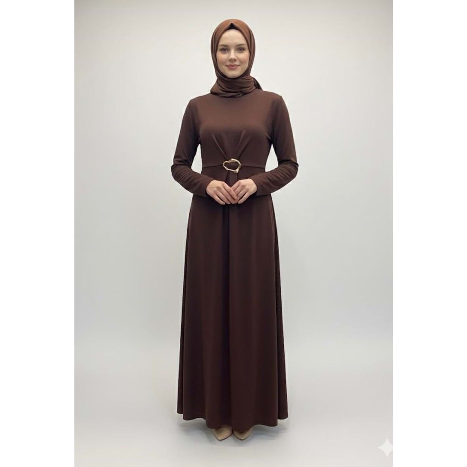 Tokalı Elbise 1144 - Acı Kahve - S-M - AZRA07221-57593