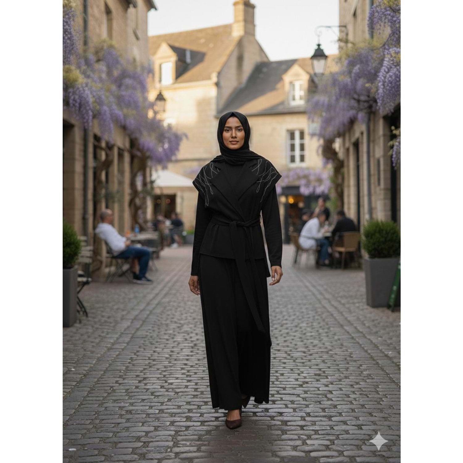 Yelekli Taşlı Elbise 7266 - Siyah - 40 - AZRA07694-60121
