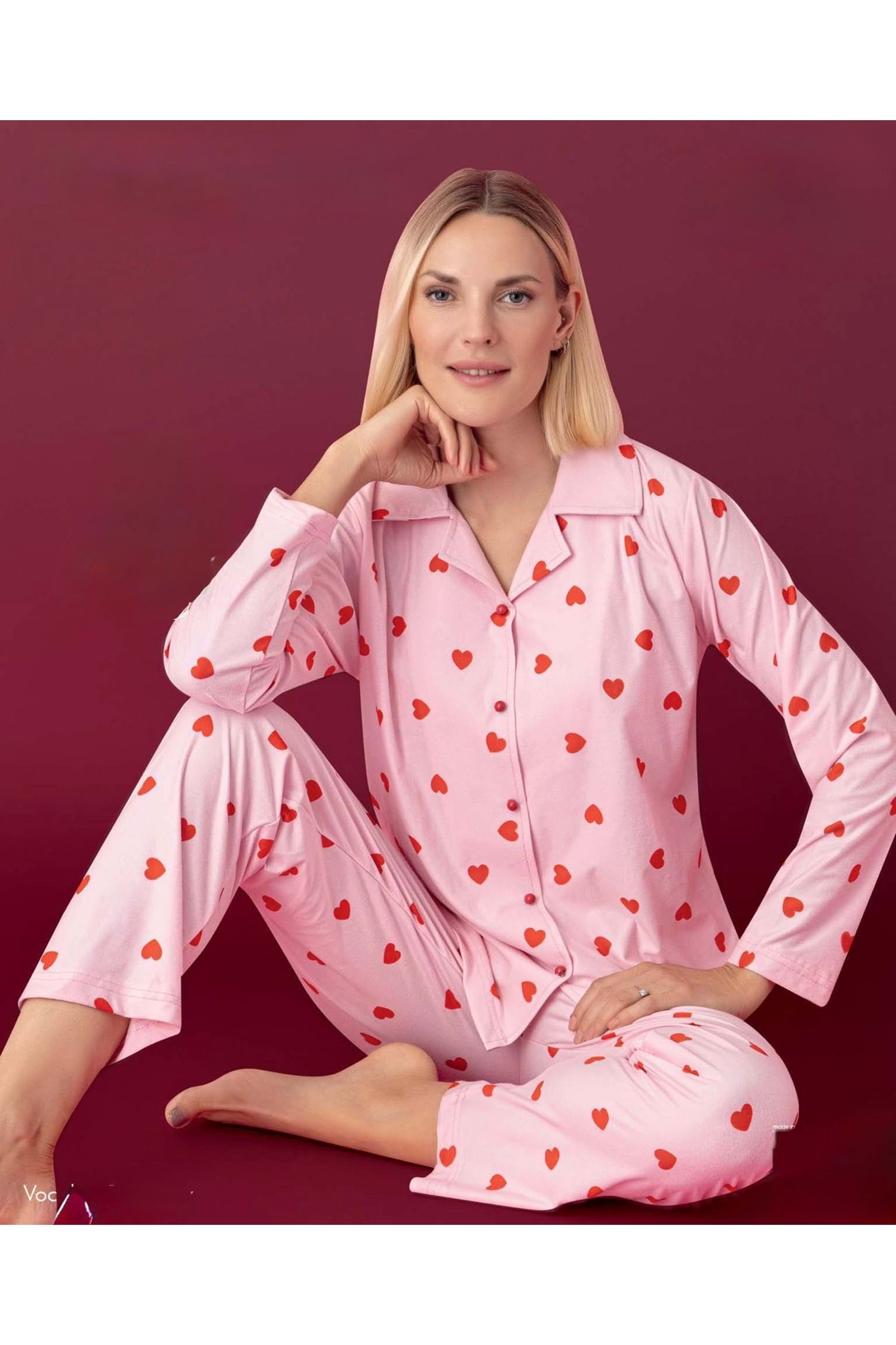 Şekil Kalpli Pijama Takımı 6735 - Pembe - XL - AZRA07182-57353