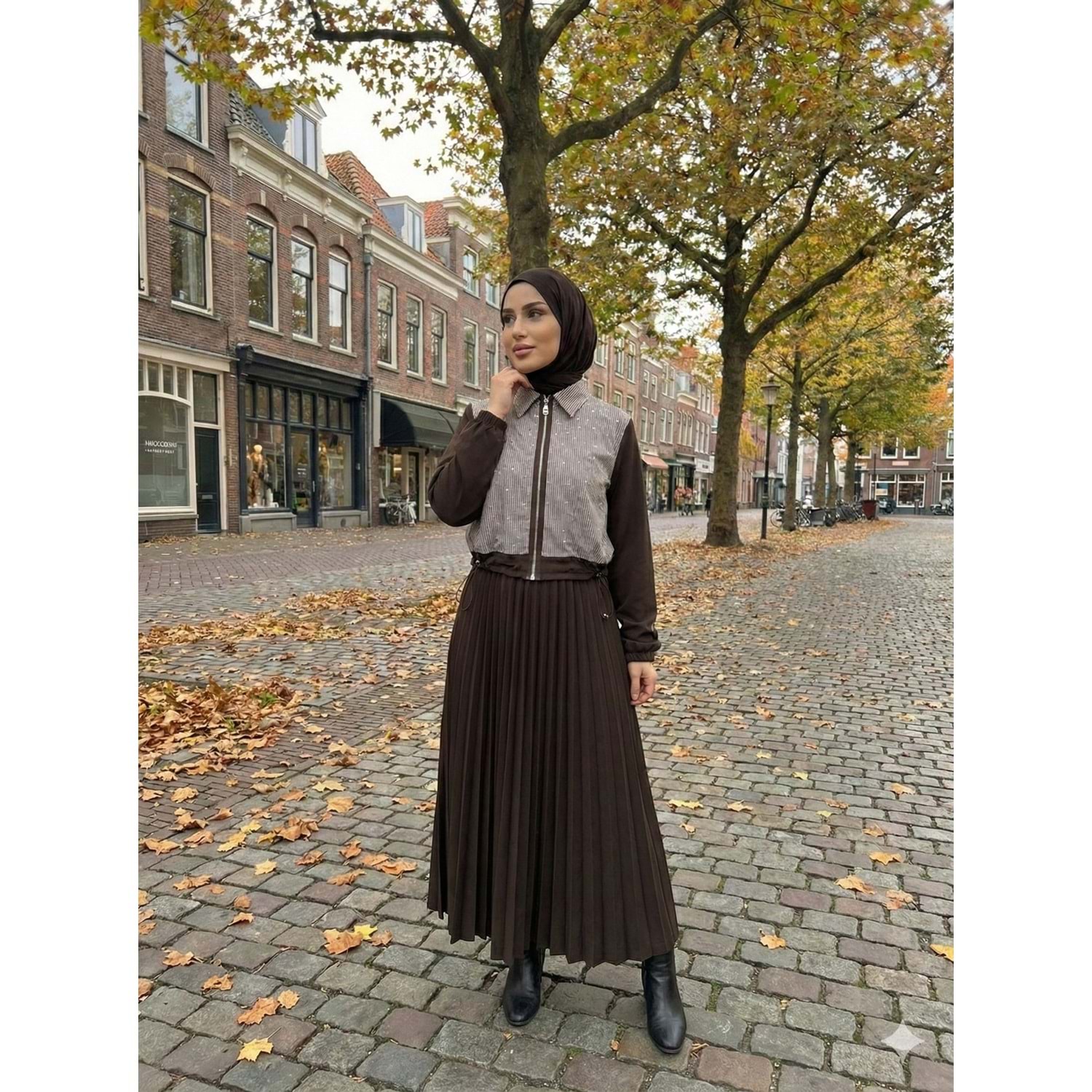 Ceketli Etekli Takım 8185 - Acı Kahve - S-M
