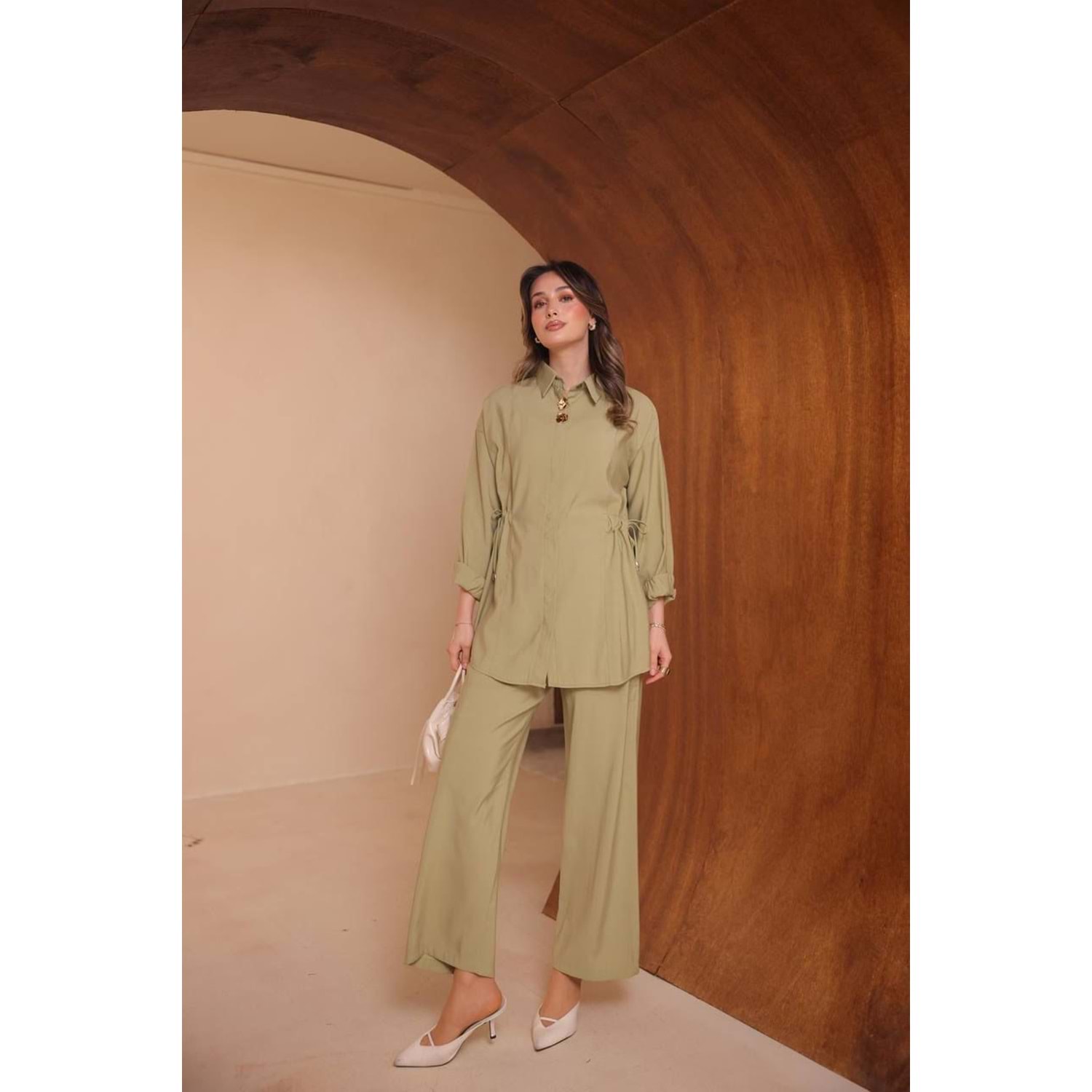 Dokuma Yanları Sıkmalı Takım 8168 - Mint Yeşili - L