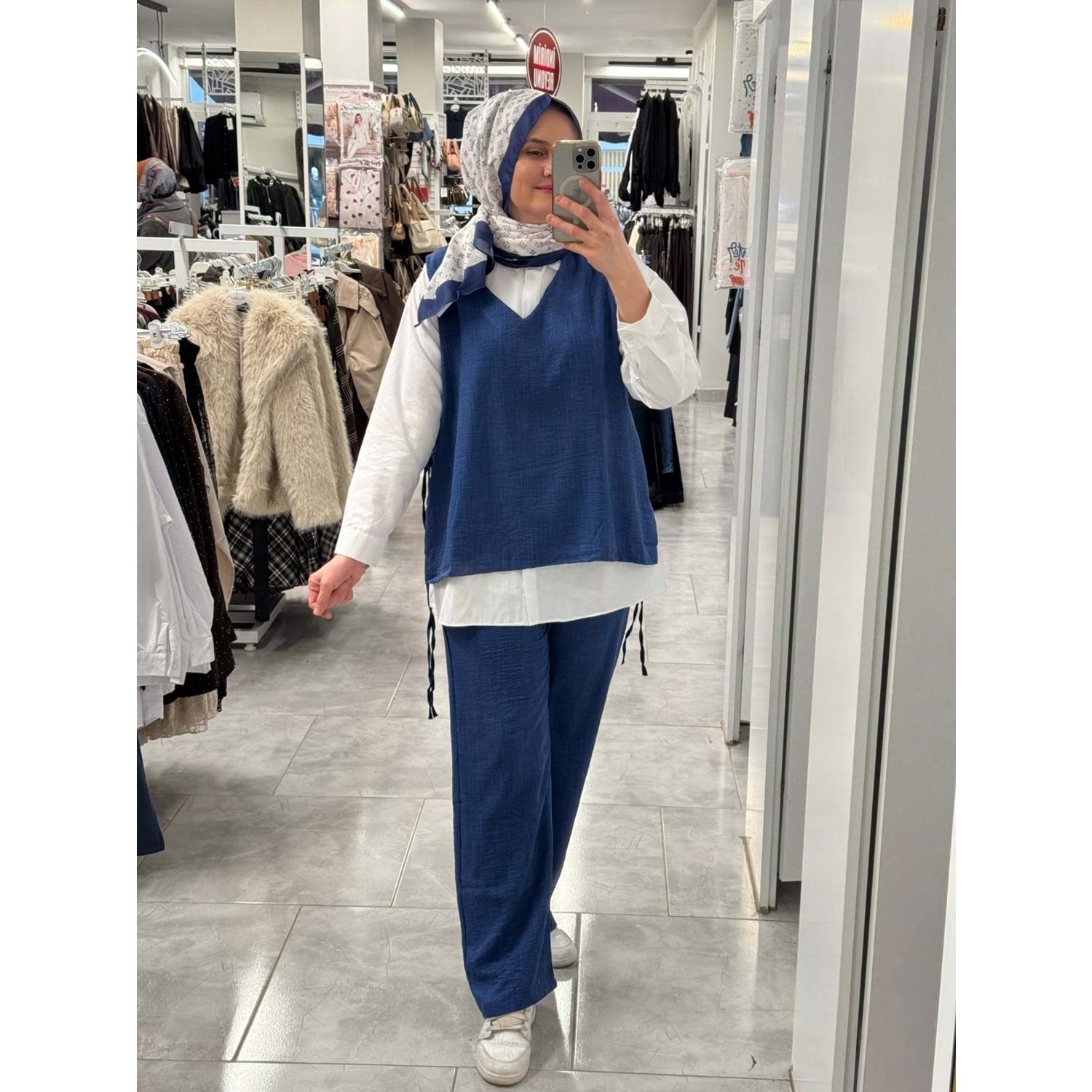Gül Detaylı 3lü Takım 24960 - Lacivert - L - AZRA07934-62151
