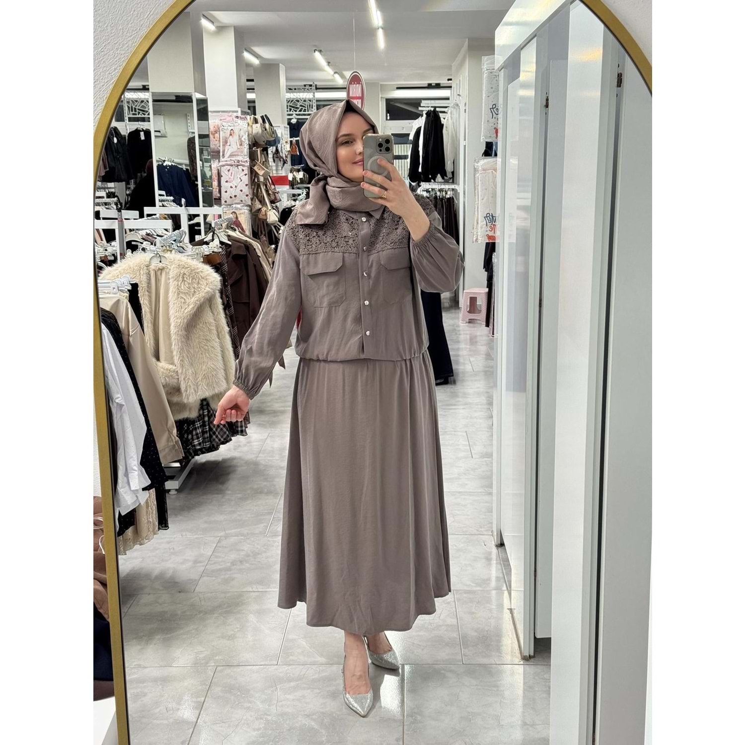 Güpürlü Etekli Takım 120389 - Vizon - 36 - AZRA07879-61741