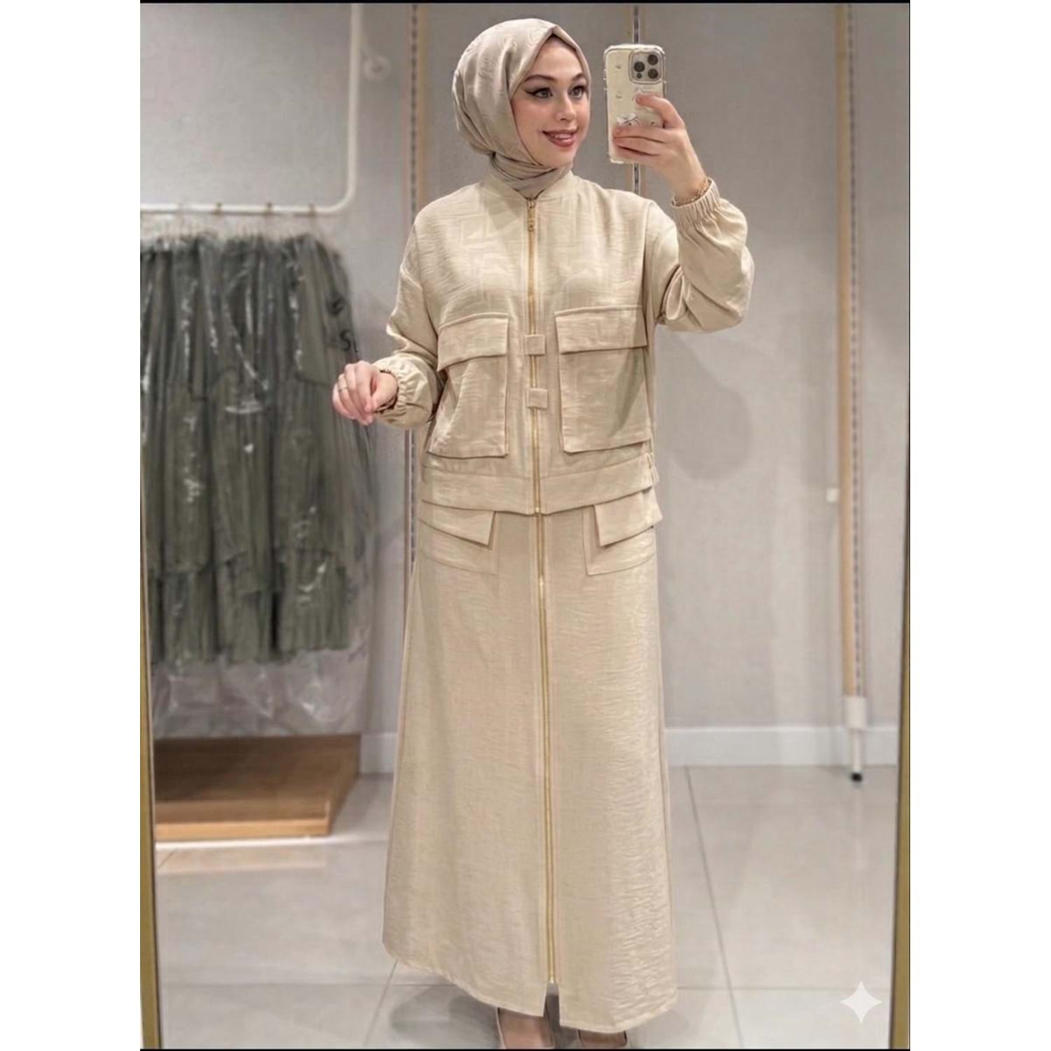 Kendinden Desenli Etekli Takım 1454 - Bej - S-M