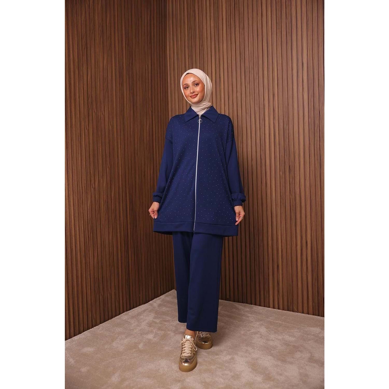Pullu Fermuarlı Oysho Kumaş Takım 5309 - Lacivert - M