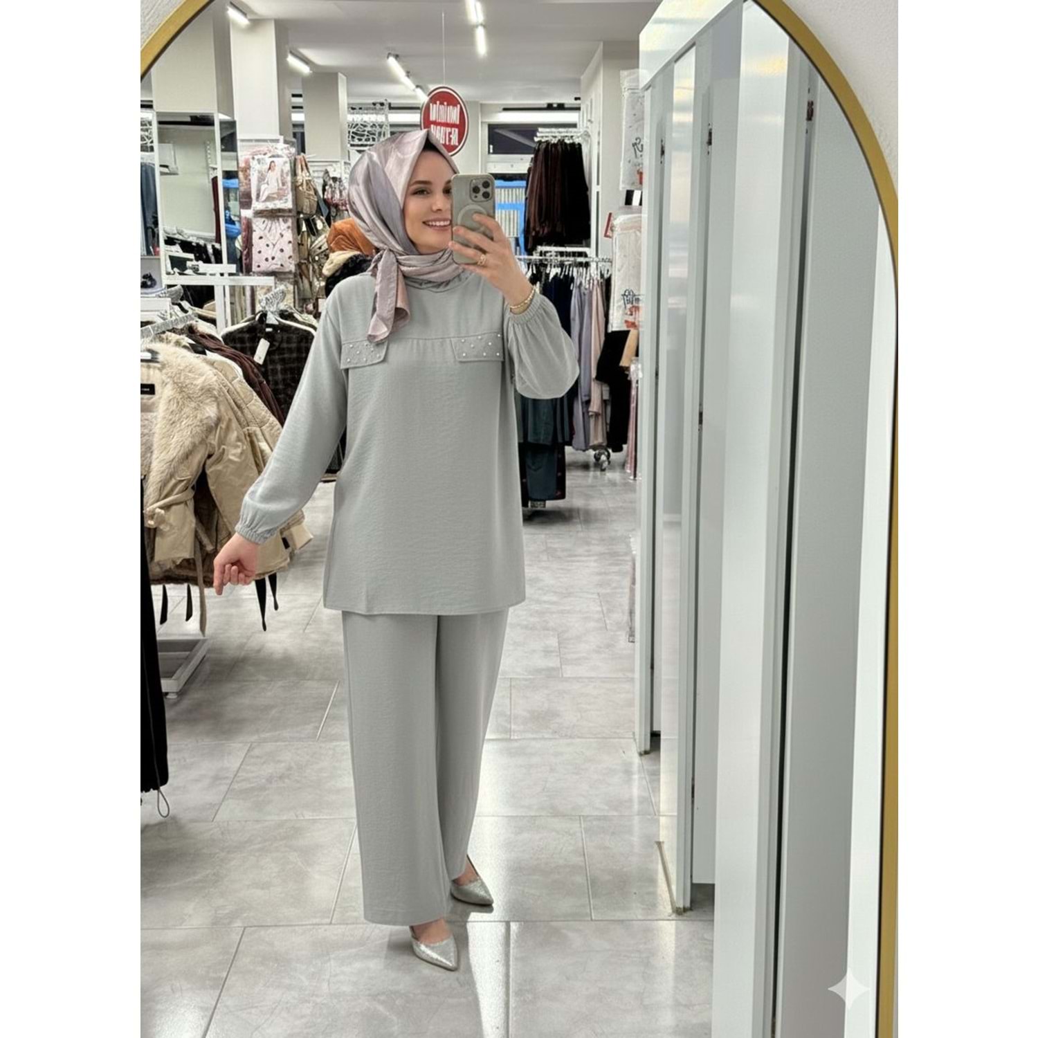 Taşlı Kapşonlu Takım 24919 - Gri - S - AZRA07802-61062