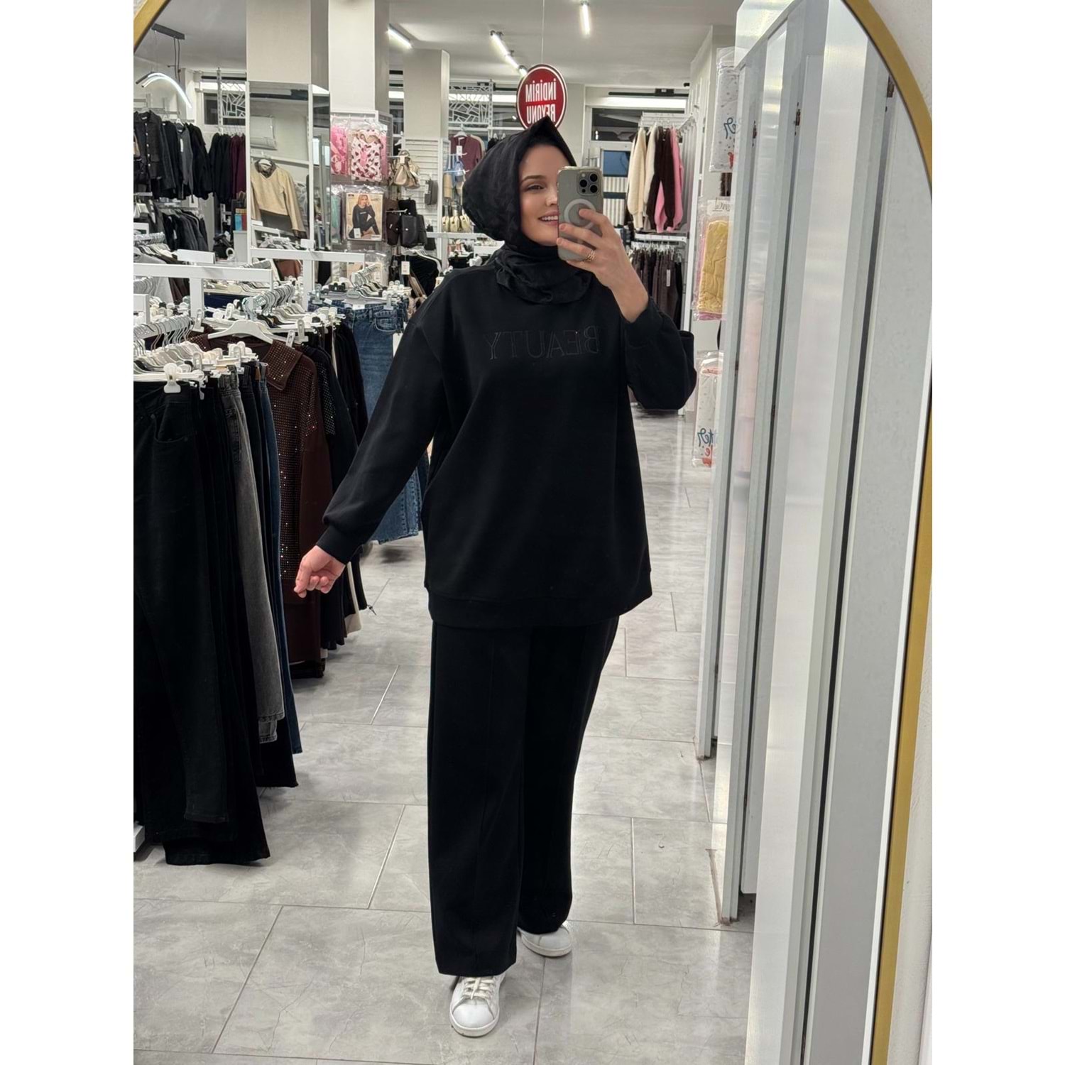 Tona Ton Baskı Ve Taşlı Takım 35790 - Siyah - L - AZRA07386-Siyah-L